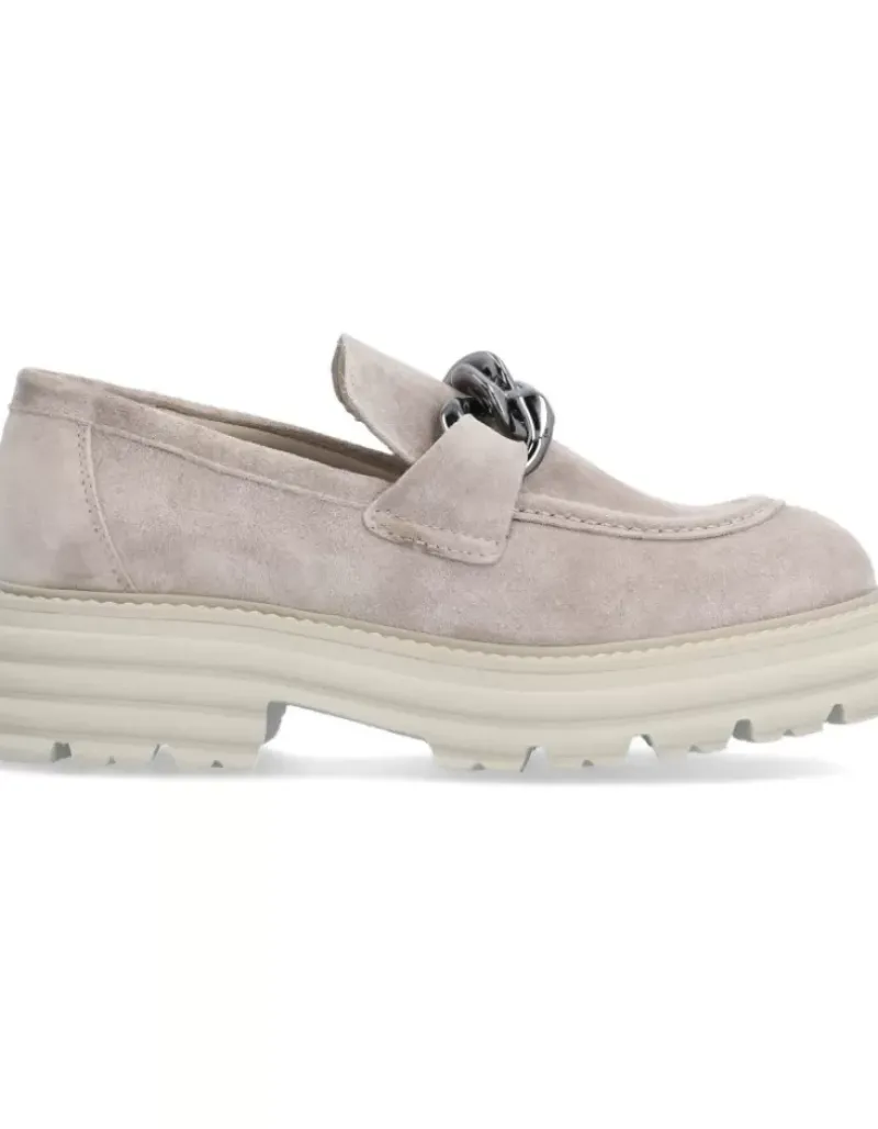 Zapato Para Mujer Alpe Alabama, Fabricado En Piel (Baby Silk) De Color Taupe Con Tacon De 5 Cm, Suela Antideslizante Y Puntera Redonda, Sin Cierre.