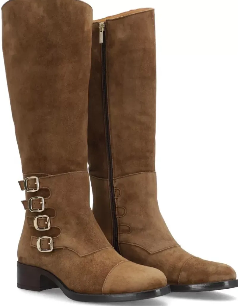 Bota Para Femme Alpe Alain-2, Fabricada En Piel (Baby Silk) De Color Sandalo Con Tacon De 6 Cm, Suela Antideslizante Y Puntera Redonda, Con Cierre Mediante Cremallera Alta.