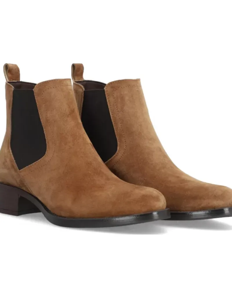 Botin Para Mujer Alpe Alain-2, Fabricado En Piel (Baby Silk) De Color Cuero Con Tacon De 3,5 Cm, Suela Antideslizante Y Puntera Redonda, Sin Cierre Y Cana Baja.