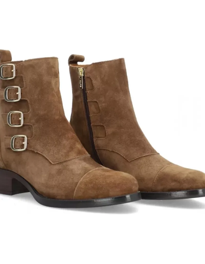Botin Para Mujer Alpe Alain-2, Fabricado En Piel (Baby Silk) De Color Cuero Con Tacon De 3,5 Cm, Suela Antideslizante Y Puntera Redonda, Con Cierre Mediante Cremallera Y Cana Baja.