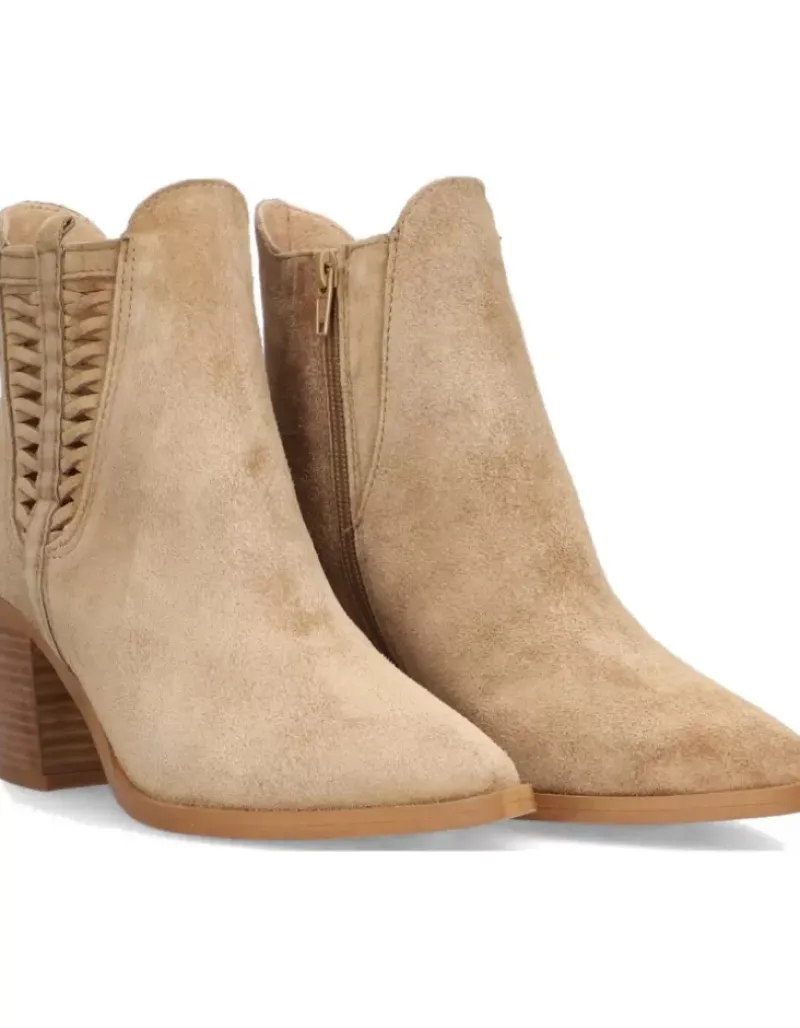 Botin Para Femme Alpe Alina, Fabricado En Piel (Baby Silk) De Color Cuero Con Tacon De 6,5 Cm, Suela Antideslizante Y Puntera Afilada, Con Cierre Mediante Cremallera Y Cana Baja.