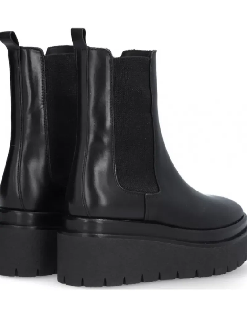 Bota Para Femme Alpe Amiri, Fabricada En Piel (Becerro) De Color Negro Con Plataforma De 5 Cm, Suela Antideslizante Y Puntera Redonda, Sin Cierre Y Cana Baja.