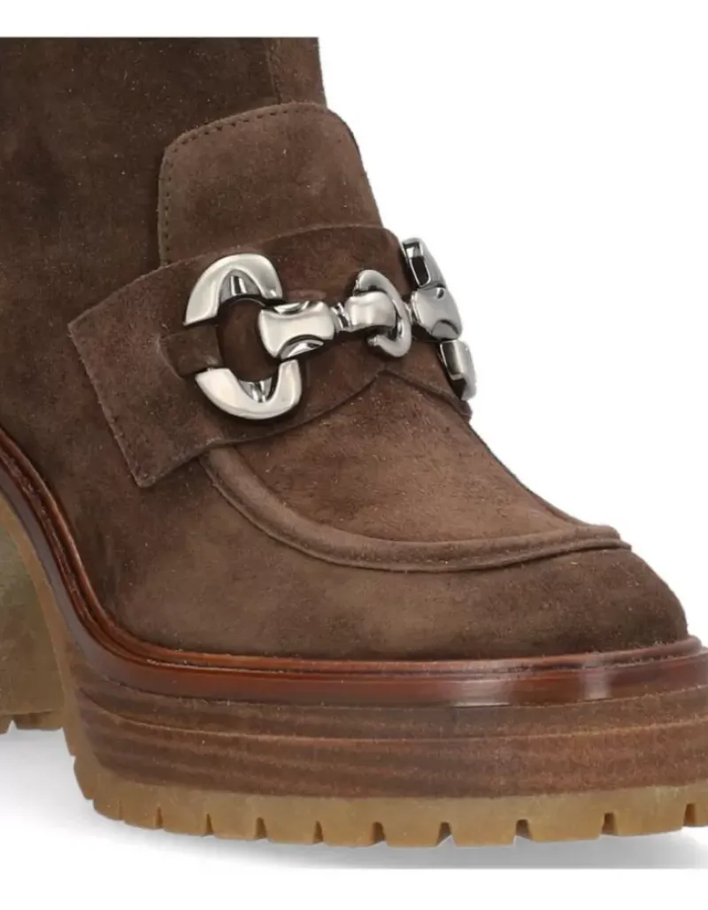 Botin Para Femme Alpe Anima, Fabricado En Piel (Baby Silk) De Color Arabica Con Tacon De 8,5 Cm, Suela Antideslizante Y Puntera Redonda, Con Cierre Mediante Cremallera Y Cana Baja.