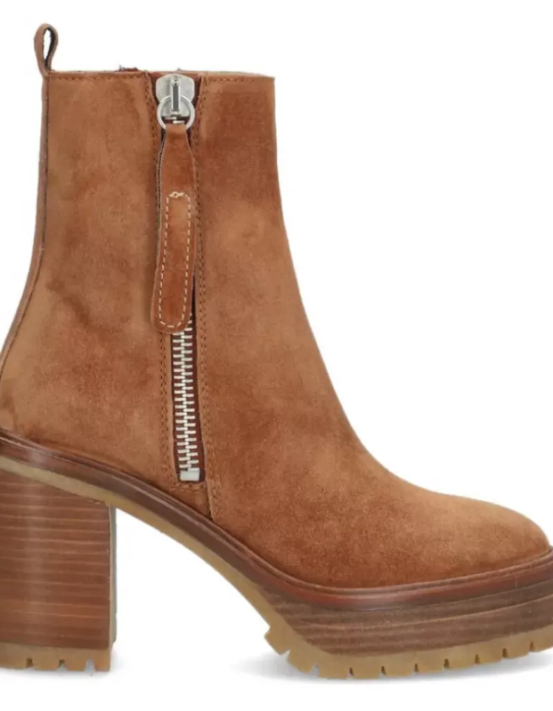 Botin Para Femme Alpe Anima, Fabricado En Piel (Baby Silk) De Color Sella Con Tacon De 8,5 Cm, Suela Antideslizante Y Puntera Redonda, Con Cierre Mediante Cremallera Y Cana Baja.
