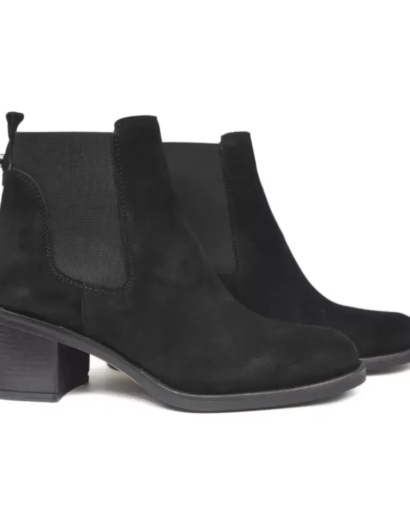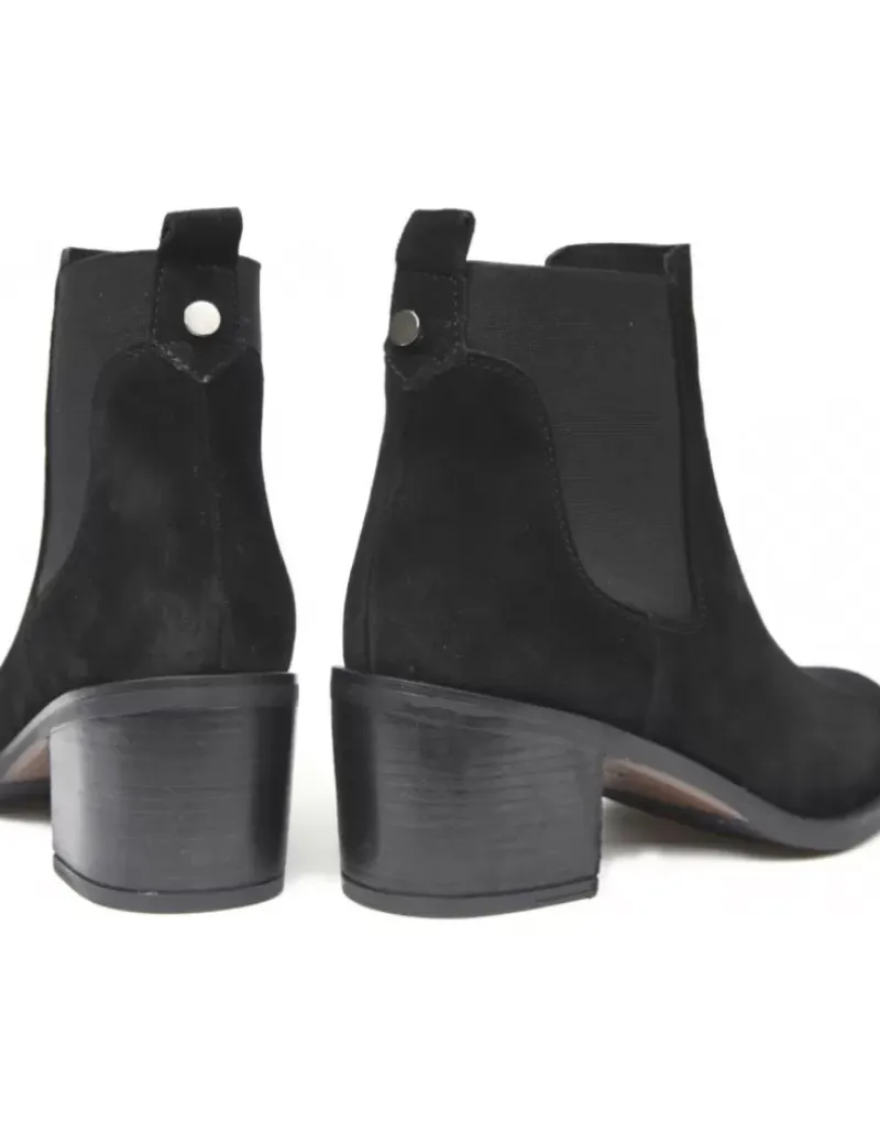 Botin Para Femme Alpe Anne, Fabricado En Piel (Baby Silk) De Color Negro Con Tacon De 5,5 Cm, Suela Antideslizante Y Puntera Redonda, Sin Cierre Y Cana Baja.