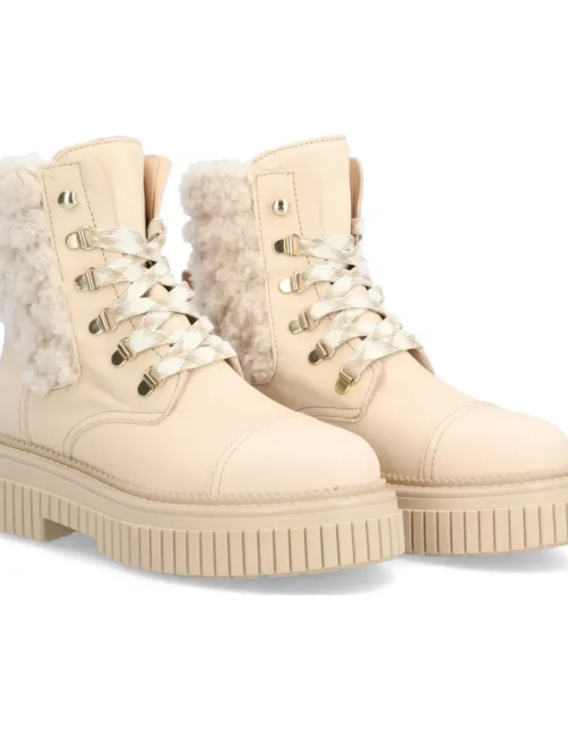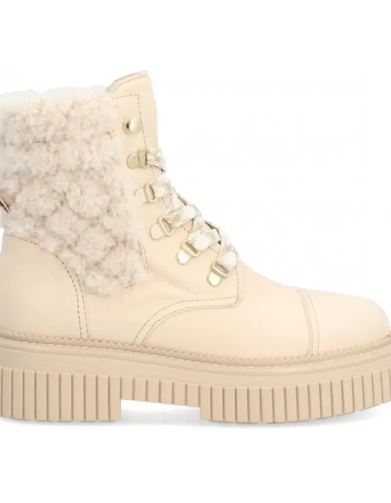 Bota Para Mujer Alpe Bimba, Fabricada En Piel (Bufalo Gordon) De Color Arena Con Plataforma De 5 Cm, Suela Antideslizante Y Puntera Redonda, Con Cierre Mediante Cordon Y Cana Media.