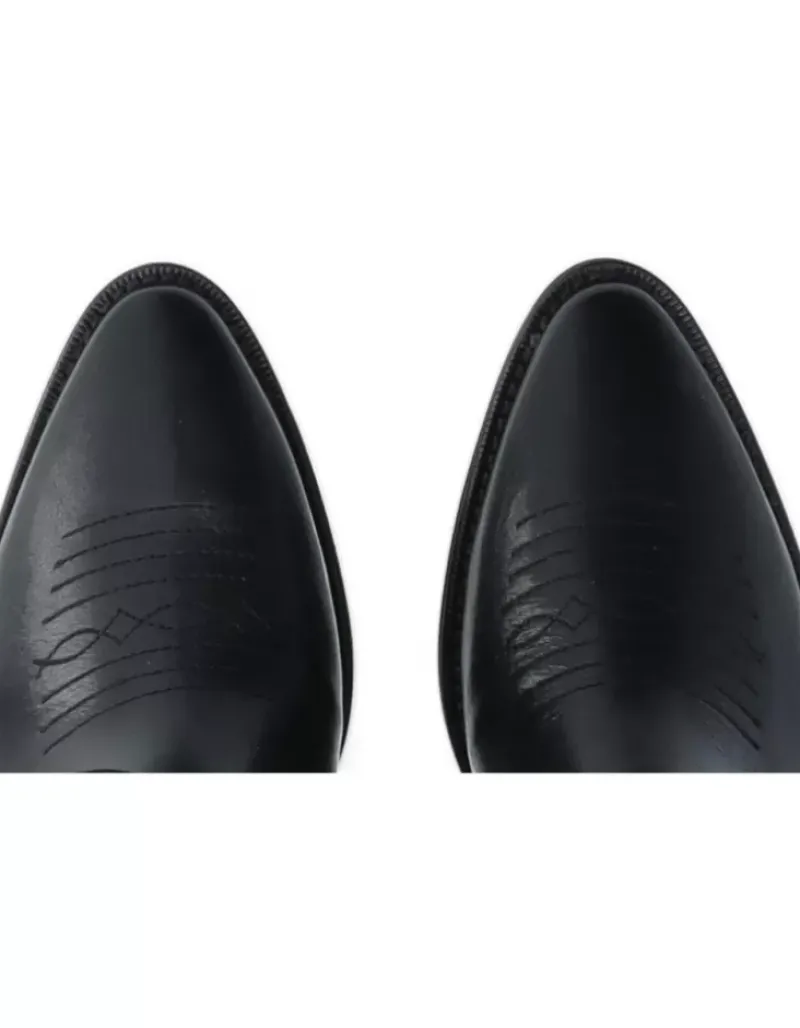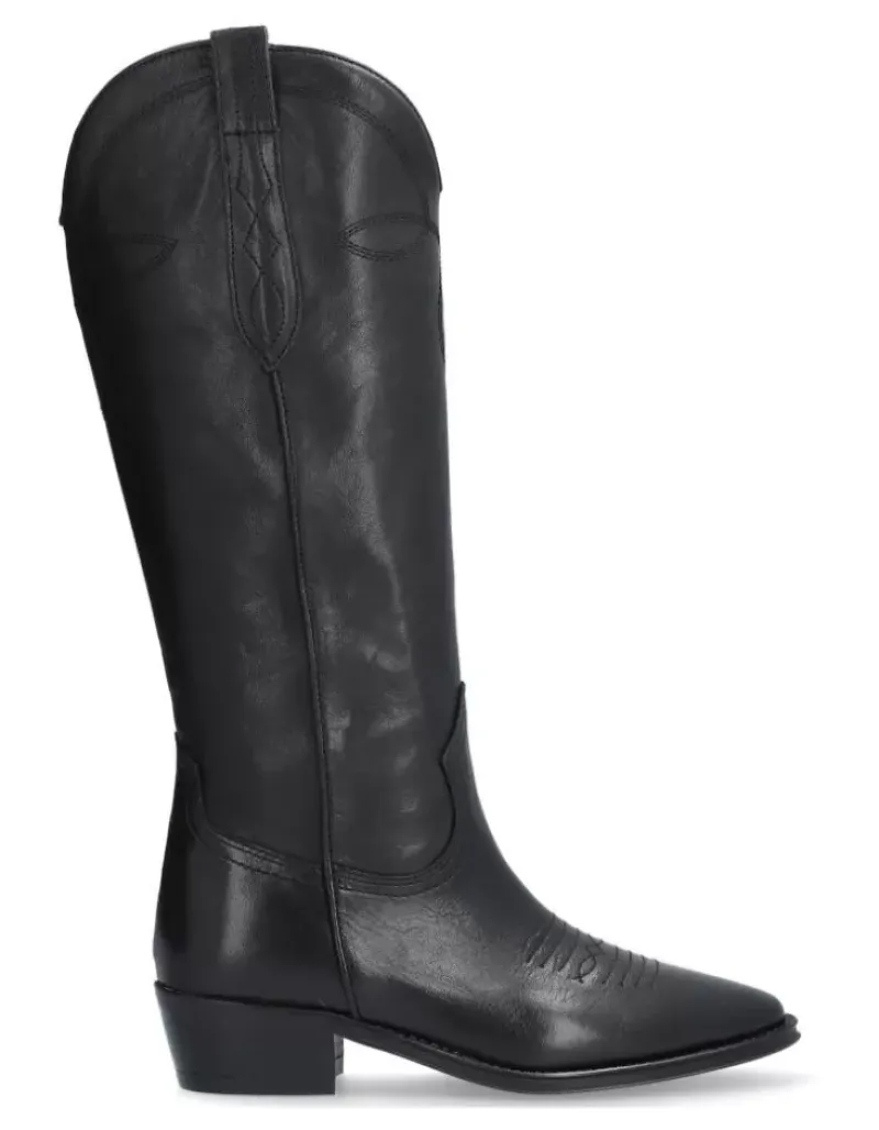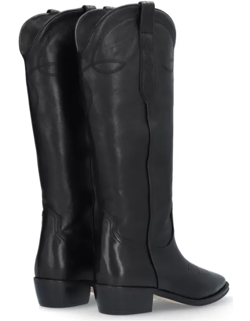 Bota Para Femme Alpe Cecile, Fabricada En Piel (Sagar) De Color Negro Con Tacon De 5 Cm, Suela Antideslizante Y Puntera Afilada, Sin Cierre Y Cana Alta.