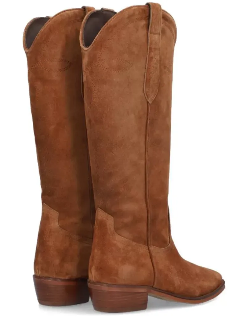 Bota Para Femme Alpe Cecile, Fabricada En Piel (Baby Silk) De Color Sella Con Tacon De 5 Cm, Suela Antideslizante Y Puntera Afilada, Sin Cierre Y Cana Alta.