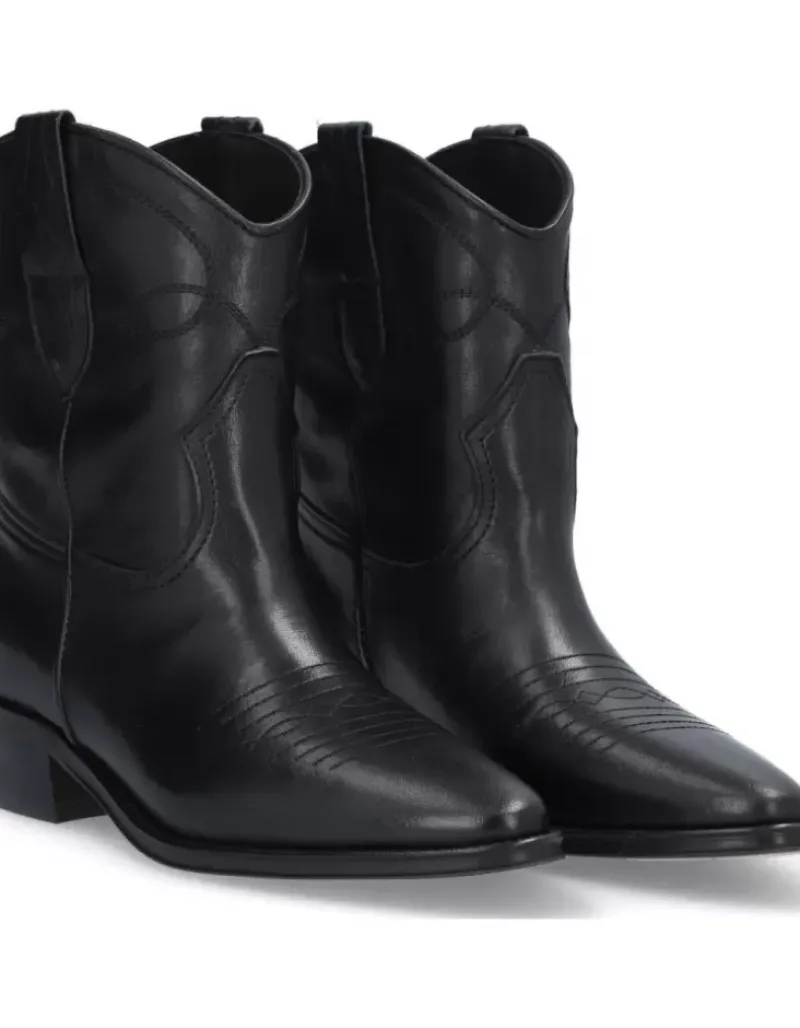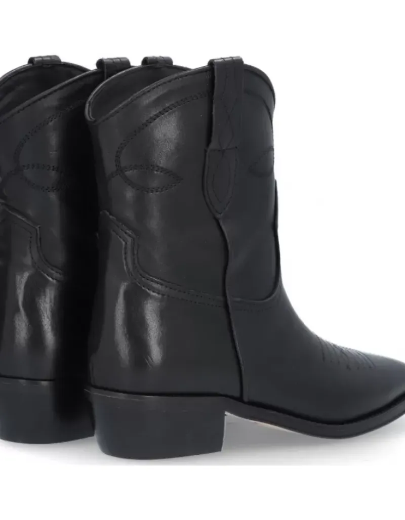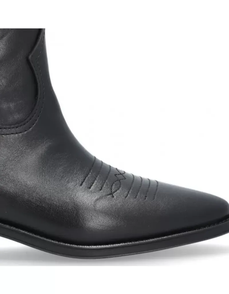 Botin Para Femme Alpe Cecile, Fabricado En Piel (Sagar) De Color Negro Con Tacon De 5 Cm, Suela Antideslizante Y Puntera Afilada, Sin Cierre Y Cana Baja.