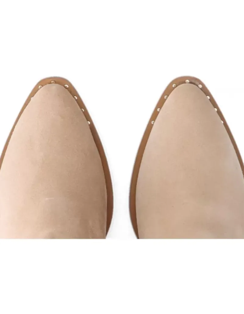 Bota Para Femme Alpe Claire, Fabricada En Piel (Baby Silk) De Color Arena Con Tacon De 5 Cm, Suela Antideslizante Y Puntera Afilada, Sin Cierre Y Cana Media.