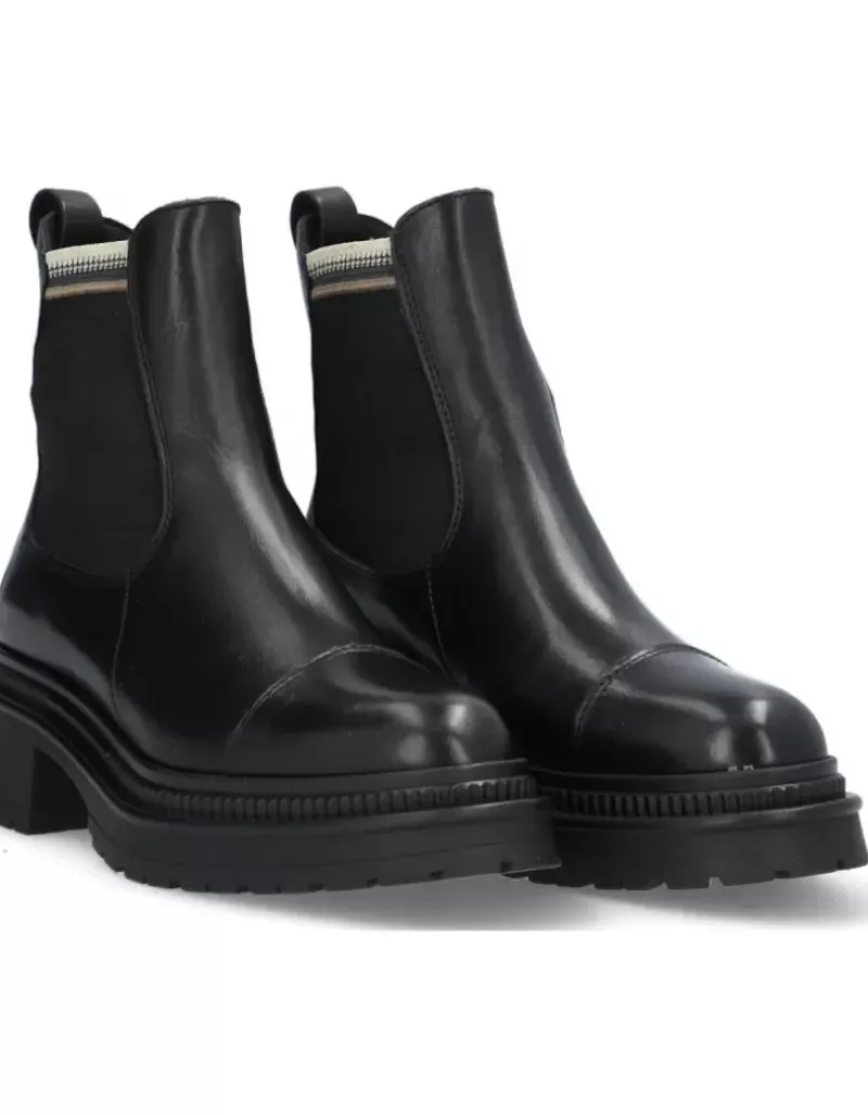 Bota Para Femme Alpe Clay, Fabricada En Piel (Bufalo) De Color Negro Con Tacon De 5 Cm, Suela Antideslizante Y Puntera Redonda, Sin Cierre Y Cana Baja.