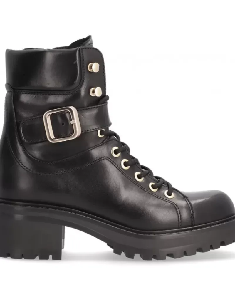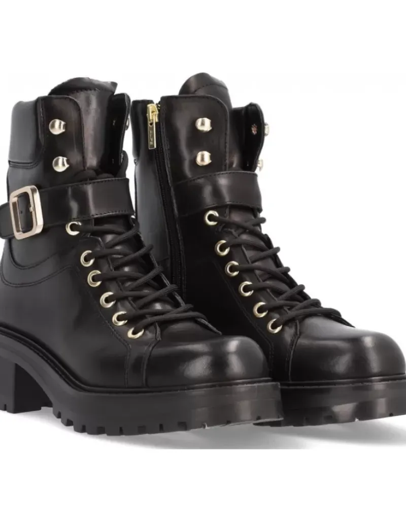 Bota Para Mujer Alpe Cool, Fabricada En Piel (Becerro) De Color Negro Con Tacon De 5 Cm, Suela Antideslizante Y Puntera Redonda, Con Cierre Mediante Cordon Y Cana Media.