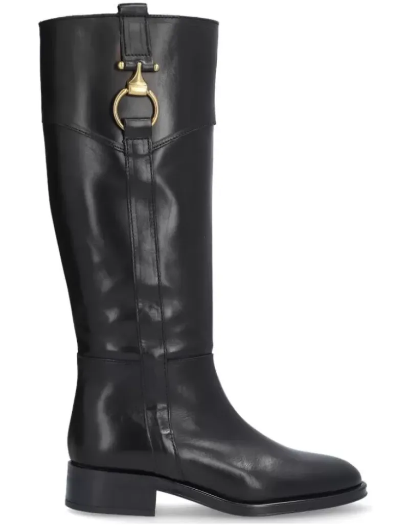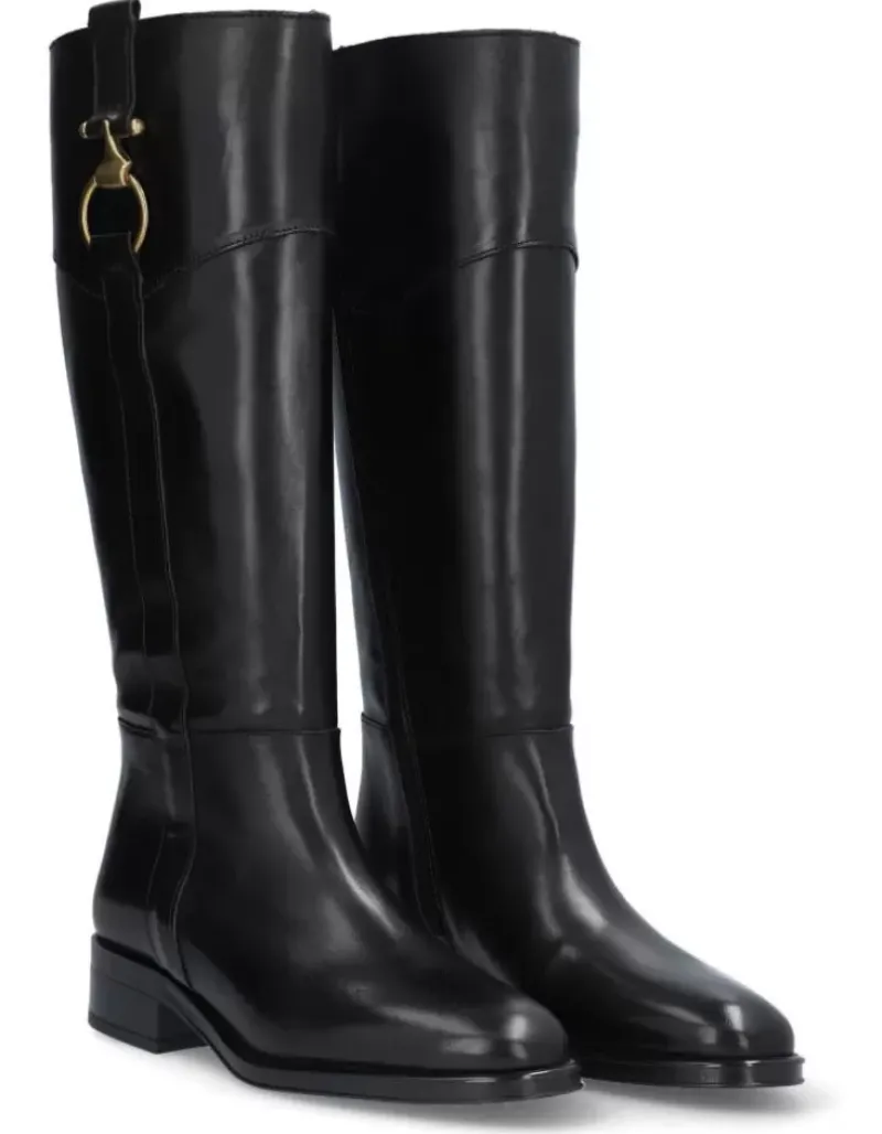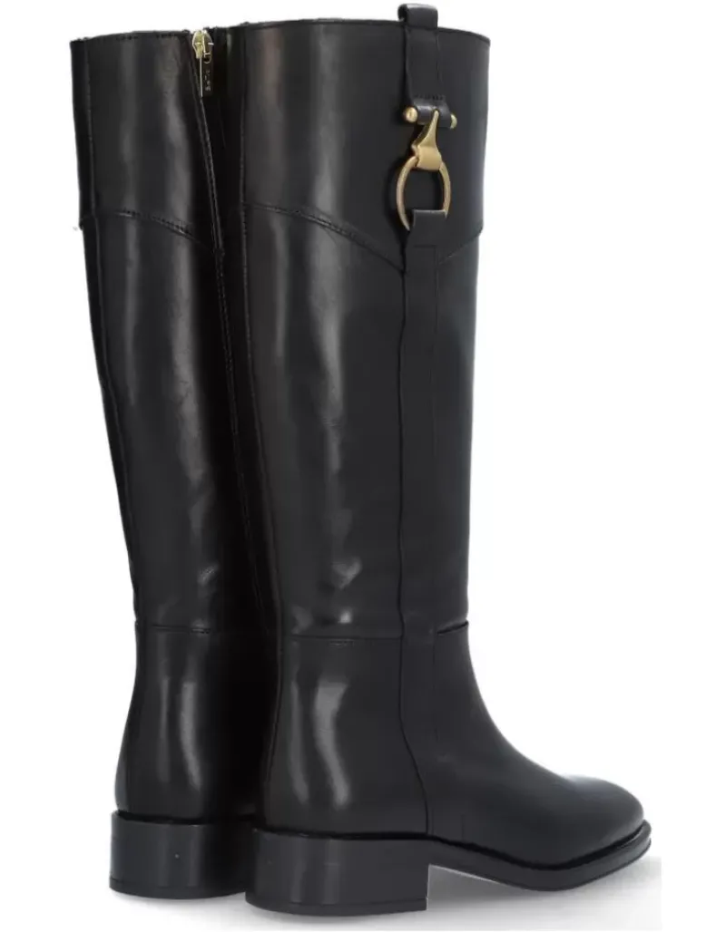 Bota Para Femme Alpe Couture, Fabricada En Piel (Becerro) De Color Negro Con Tacon De 6 Cm, Suela Antideslizante Y Puntera Redonda, Con Cierre Mediante Cremallera Y Cana Alta.