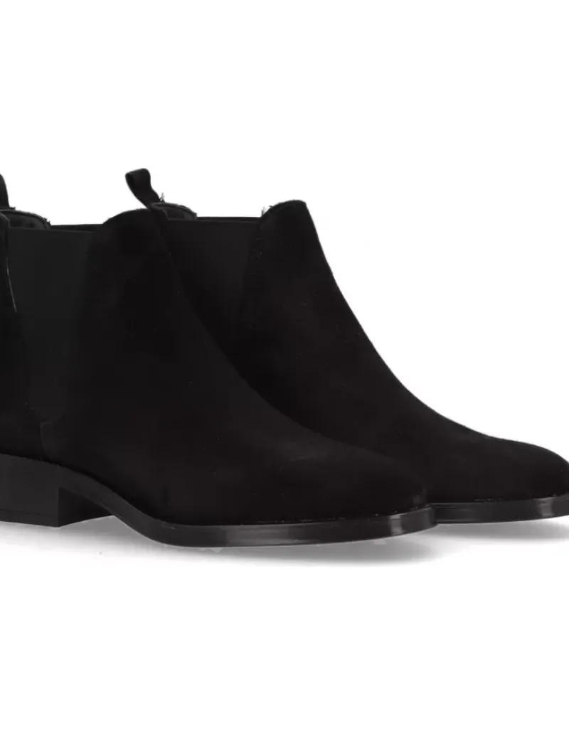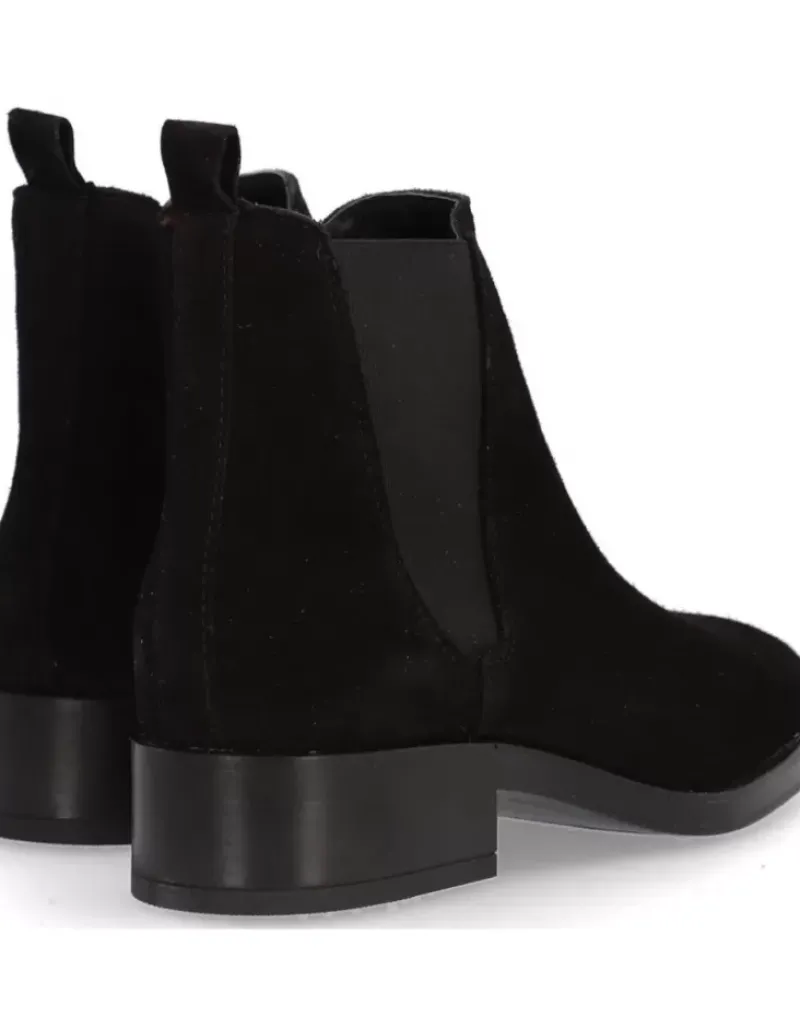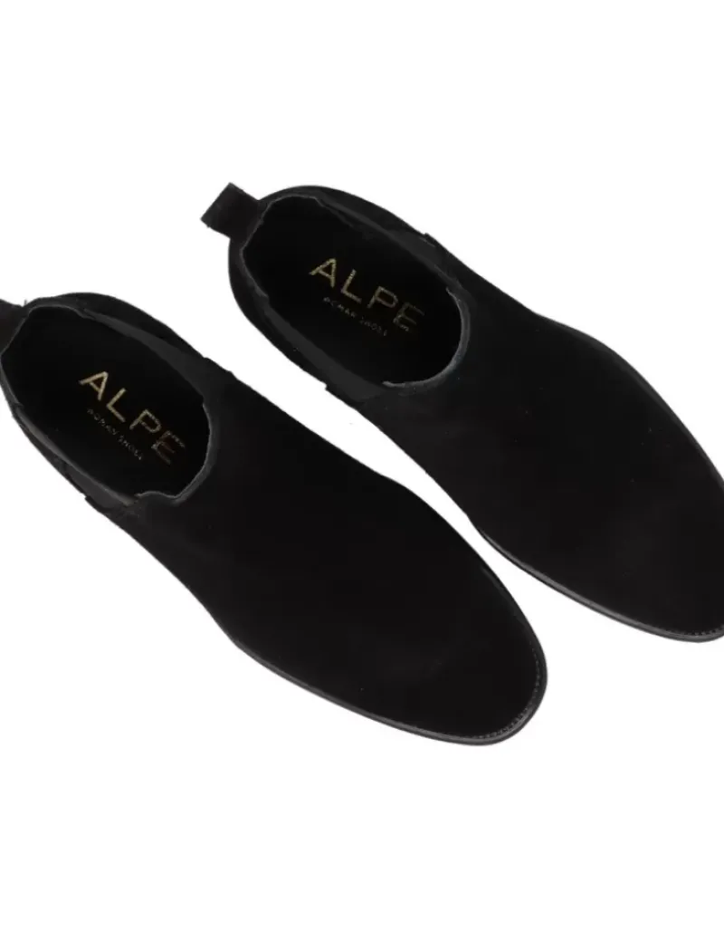 Botin Para Femme Alpe Couture, Fabricado En Piel (Baby Silk) De Color Negro Con Tacon De 6 Cm, Suela Antideslizante Y Puntera Redonda, Sin Cierre Y Cana Baja.