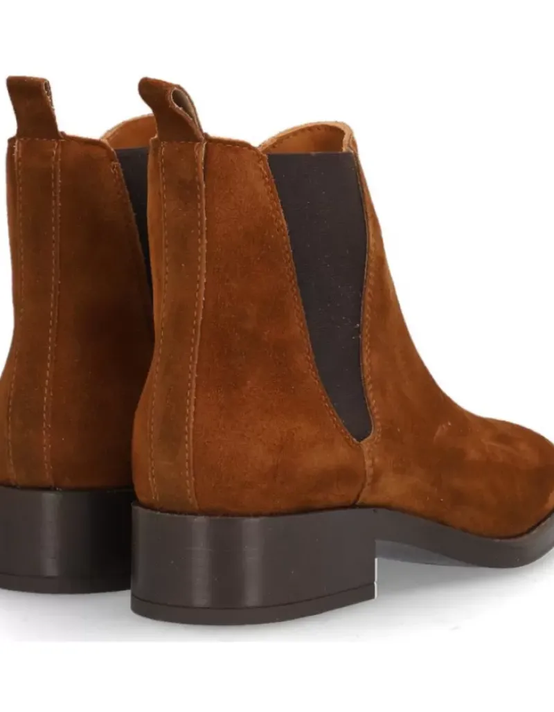 Botin Para Femme Alpe Couture, Fabricado En Piel (Baby Silk) De Color Cuero Con Tacon De 6 Cm, Suela Antideslizante Y Puntera Redonda, Sin Cierre Y Cana Baja.