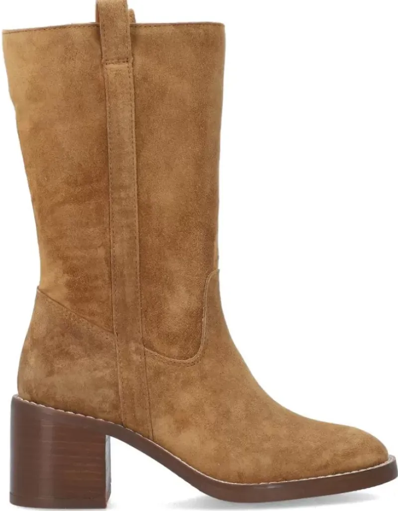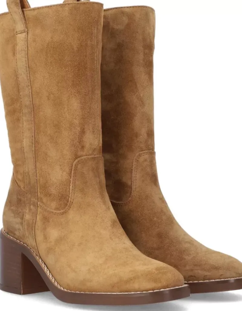 Bota Para Mujer Alpe Covent, Fabricada En Piel (Baby Silk) De Color Birra Con Tacon De 6,5 Cm, Suela Antideslizante Y Puntera Redonda, Sin Cierre Y Cana Media.