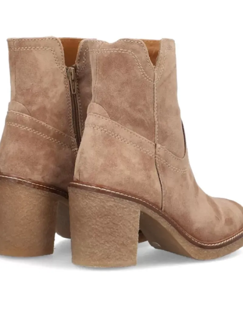 Botin Para Femme Alpe Crep, Fabricado En Piel (Baby Silk) De Color Bryce Con Tacon De 8 Cm, Suela Antideslizante Y Puntera Afilada, Con Cierre Mediante Cremallera Baja.