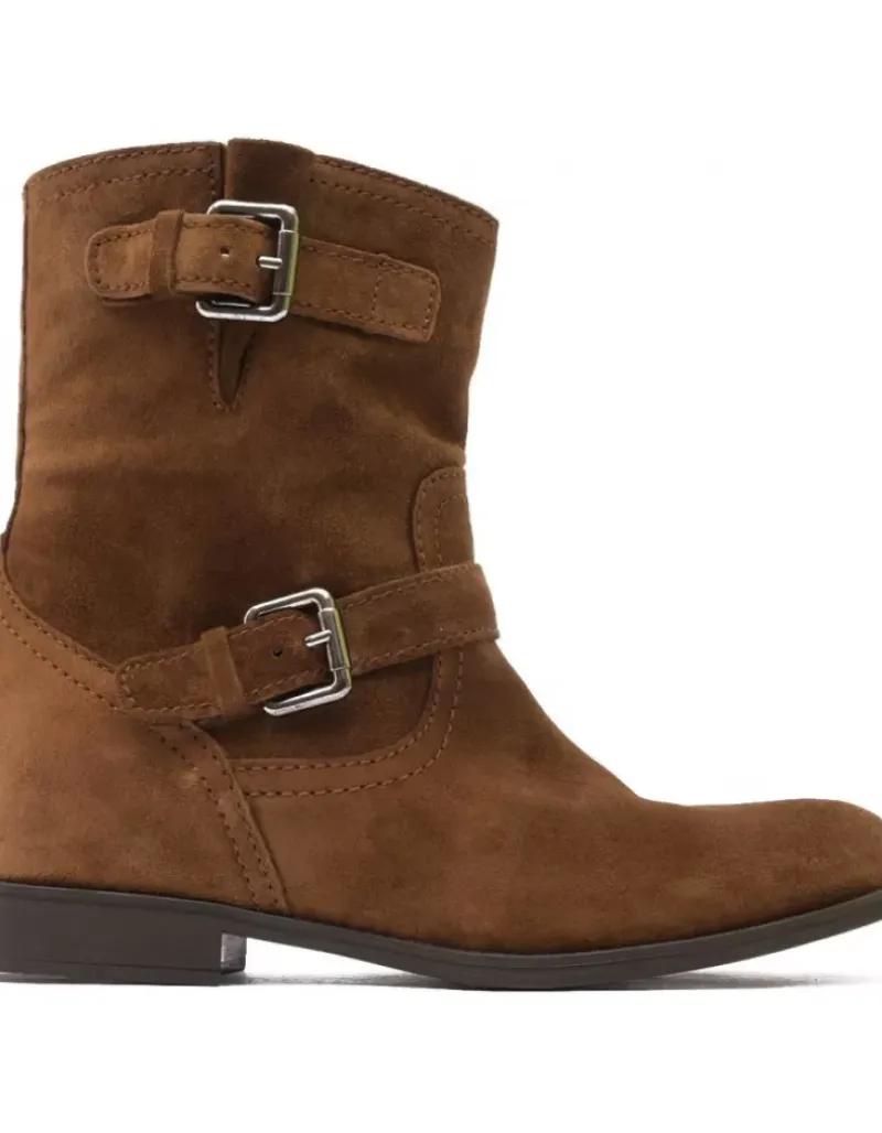 Botin Para Femme Alpe Diva, Fabricado En Piel (Baby Silk) De Color Cuero Con Tacon De 3 Cm, Suela Antideslizante Y Puntera Redonda, Sin Cierre Baja.