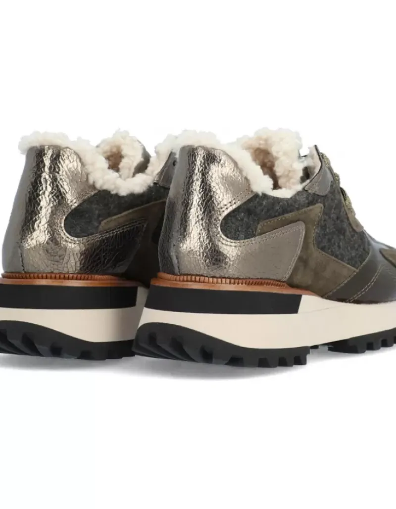 Sneaker Deportivo Para Mujer Alpe Estella, Fabricado En Piel (Franela) De Color Kaki Con Cuna De 5 Cm, Suela Antideslizante Y Puntera Redonda, Con Cierre Mediante Cordon.