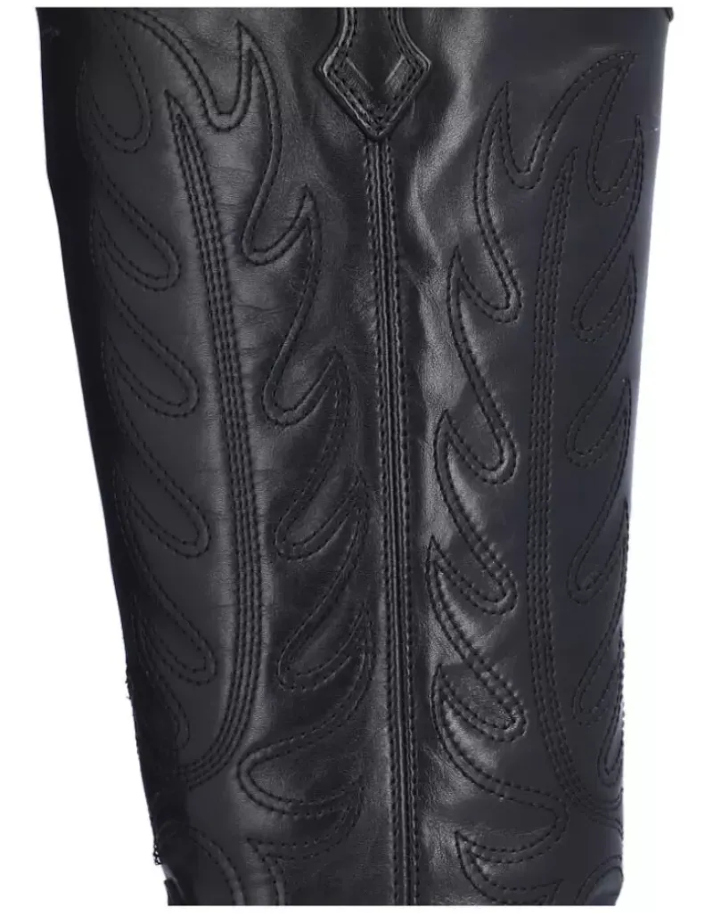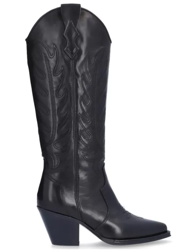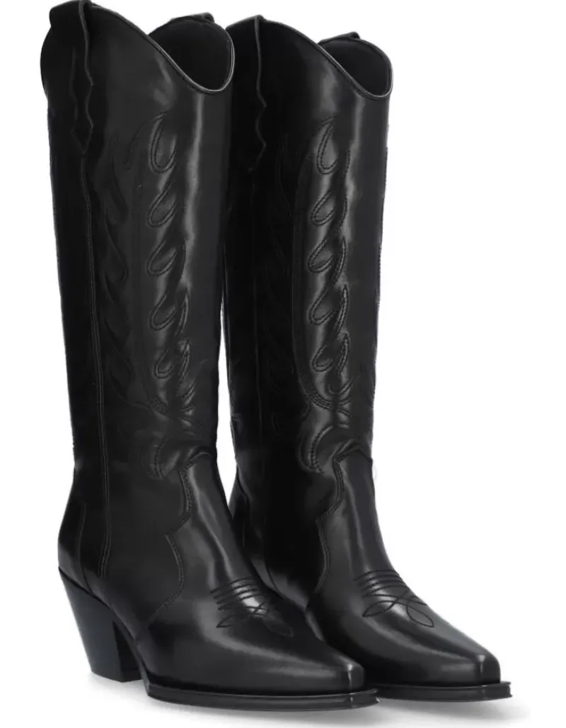 Bota Para Femme Alpe Givet, Fabricada En Piel (Becerro) De Color Negro Con Tacon De 5,5 Cm, Suela Antideslizante Y Puntera Afilada, Sin Cierre Y Cana Alta.