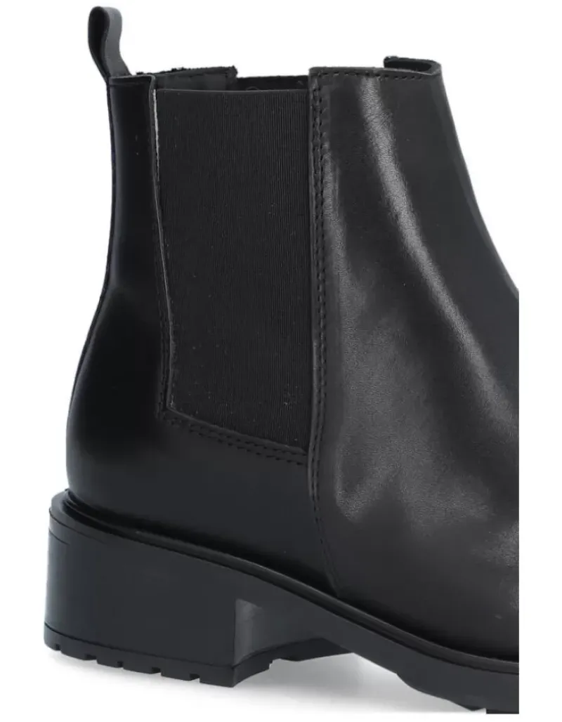 Botin Para Femme Alpe Idaho, Fabricado En Piel (Becerro) De Color Negro Con Tacon De 6 Cm, Suela Antideslizante Y Puntera Redonda, Sin Cierre Y Cana Baja.