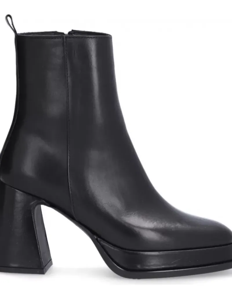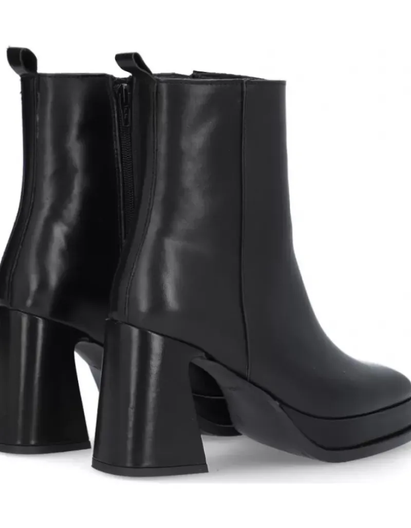 Botin Para Femme Alpe Idanna, Fabricado En Piel (Becerro) De Color Negro Con Tacon De 8,5 Cm, Suela Antideslizante Y Puntera Cuadrada, Con Cierre Mediante Cremallera Y Cana Baja.