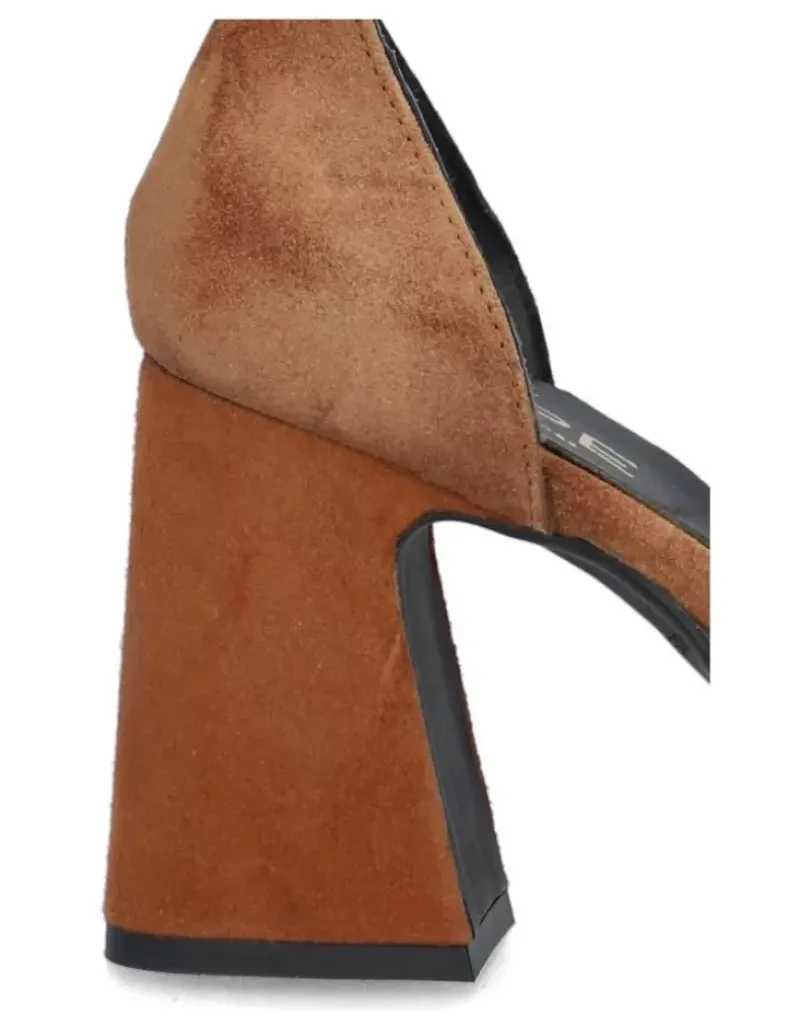 Zapato Para Femme Alpe Idanna, Fabricado En Piel (Baby Silk) De Color Sella Con Tacon De 8,5 Cm, Suela Antideslizante Y Puntera Cuadrada, Con Cierre Mediante Hebilla.