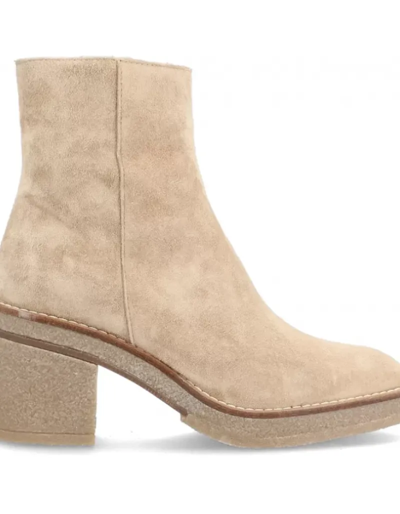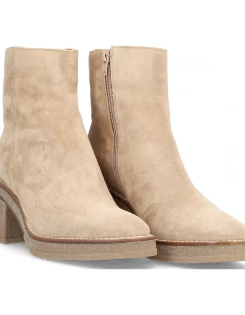 Botin Para Femme Alpe Janis, Fabricado En Piel (Baby Silk) De Color Noisette Con Tacon De 7,5 Cm, Suela Antideslizante Y Puntera Redonda, Con Cierre Mediante Cremallera Y Cana Baja.