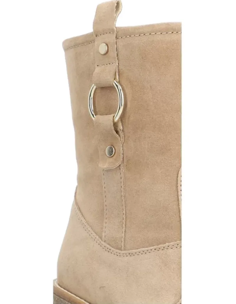 Botin Para Femme Alpe Janis, Fabricado En Piel (Baby Silk) De Color Noisette Con Tacon De 7,5 Cm, Suela Antideslizante Y Puntera Redonda, Con Cierre Mediante Cremallera Media.