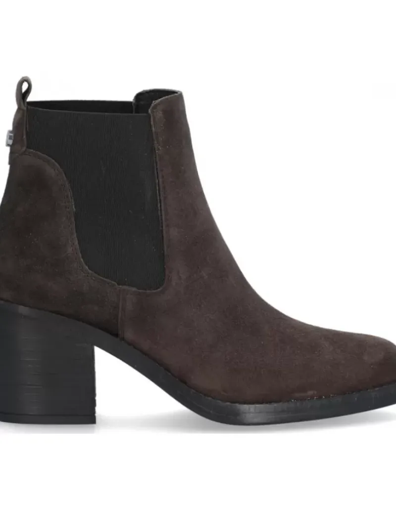 Botin Para Femme Alpe Leyna, Fabricado En Piel (Baby Silk) De Color Iman Con Tacon De 7 Cm, Suela Antideslizante Y Puntera Redonda, Sin Cierre Y Cana Baja.