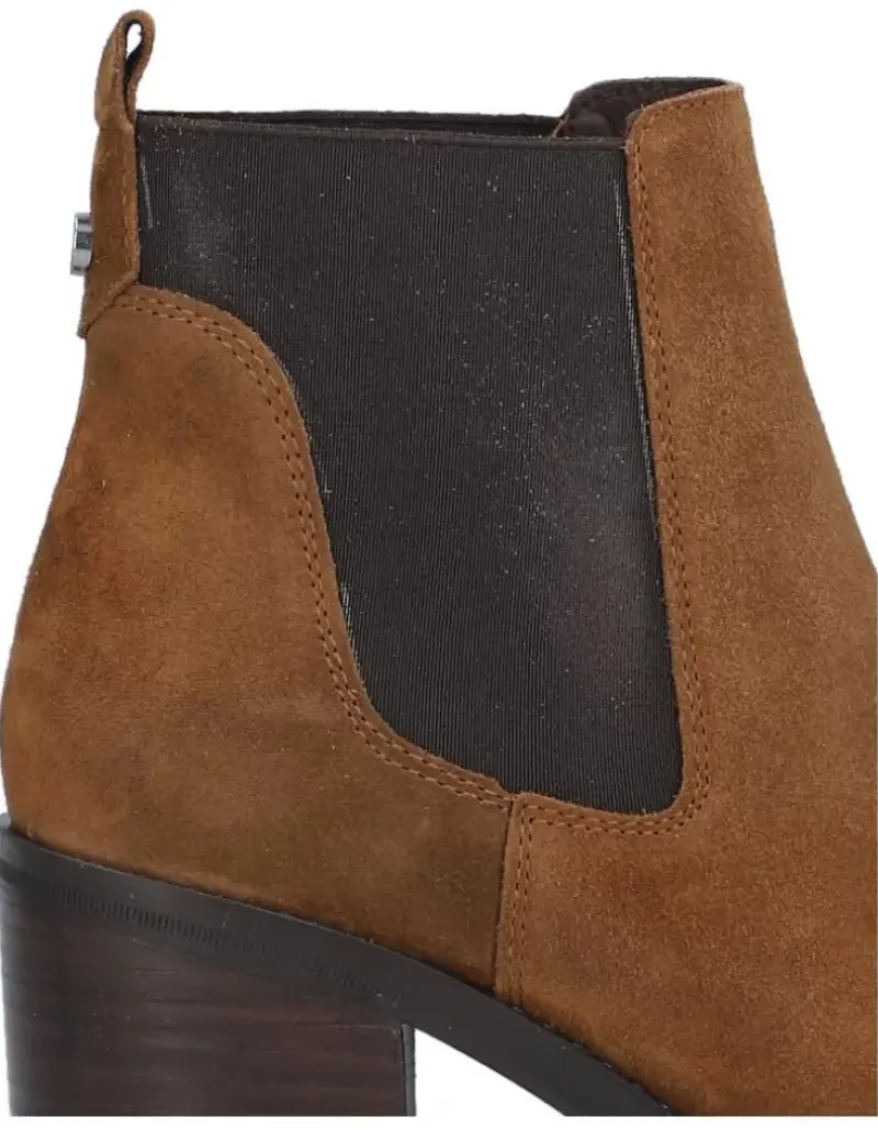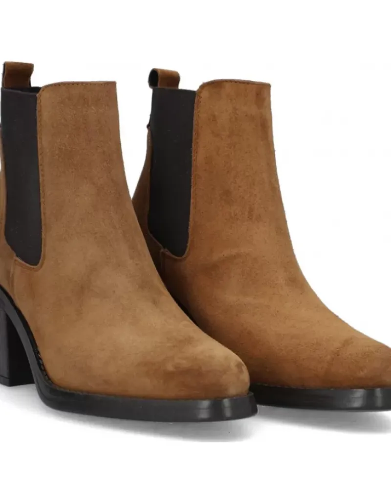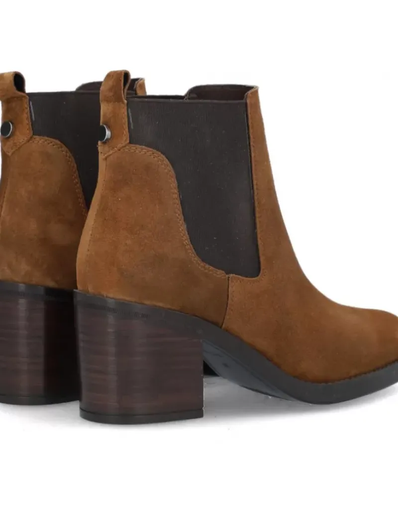 Botin Para Femme Alpe Leyna, Fabricado En Piel (Baby Silk) De Color Cuero Con Tacon De 7 Cm, Suela Antideslizante Y Puntera Redonda, Sin Cierre Y Cana Baja.