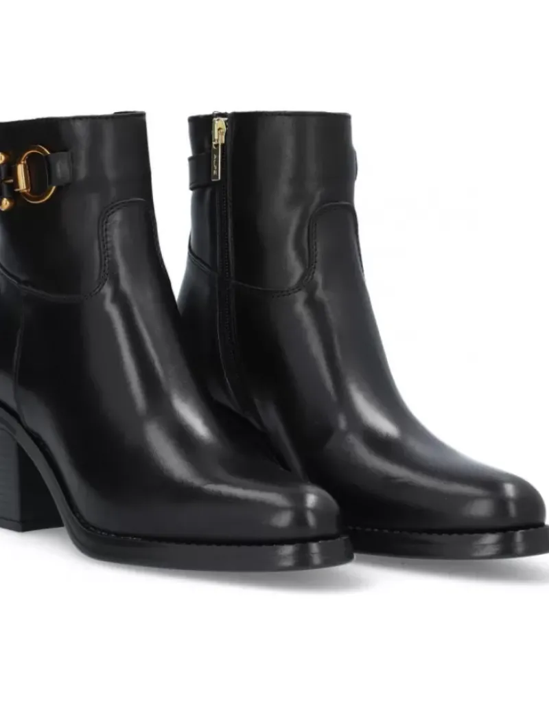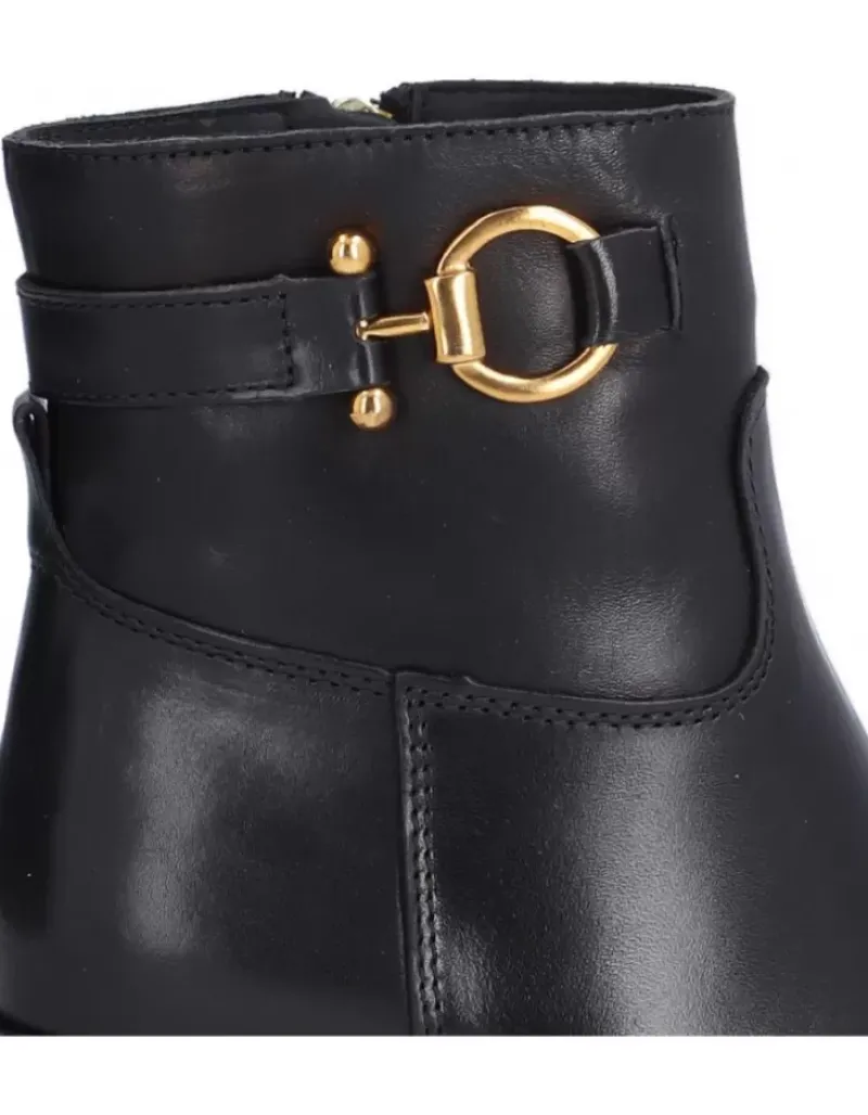 Botin Para Femme Alpe Leyna, Fabricado En Piel (Becerro) De Color Negro Con Tacon De 7 Cm, Suela Antideslizante Y Puntera Redonda, Con Cierre Mediante Cremallera Y Cana Baja.