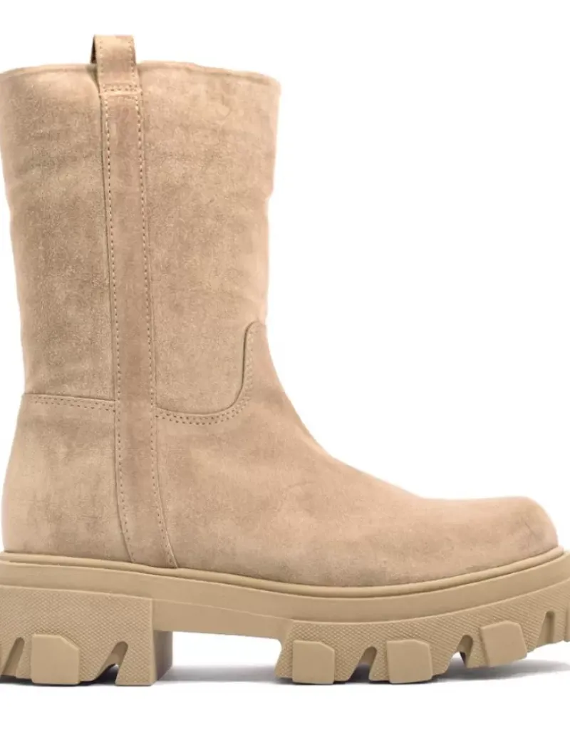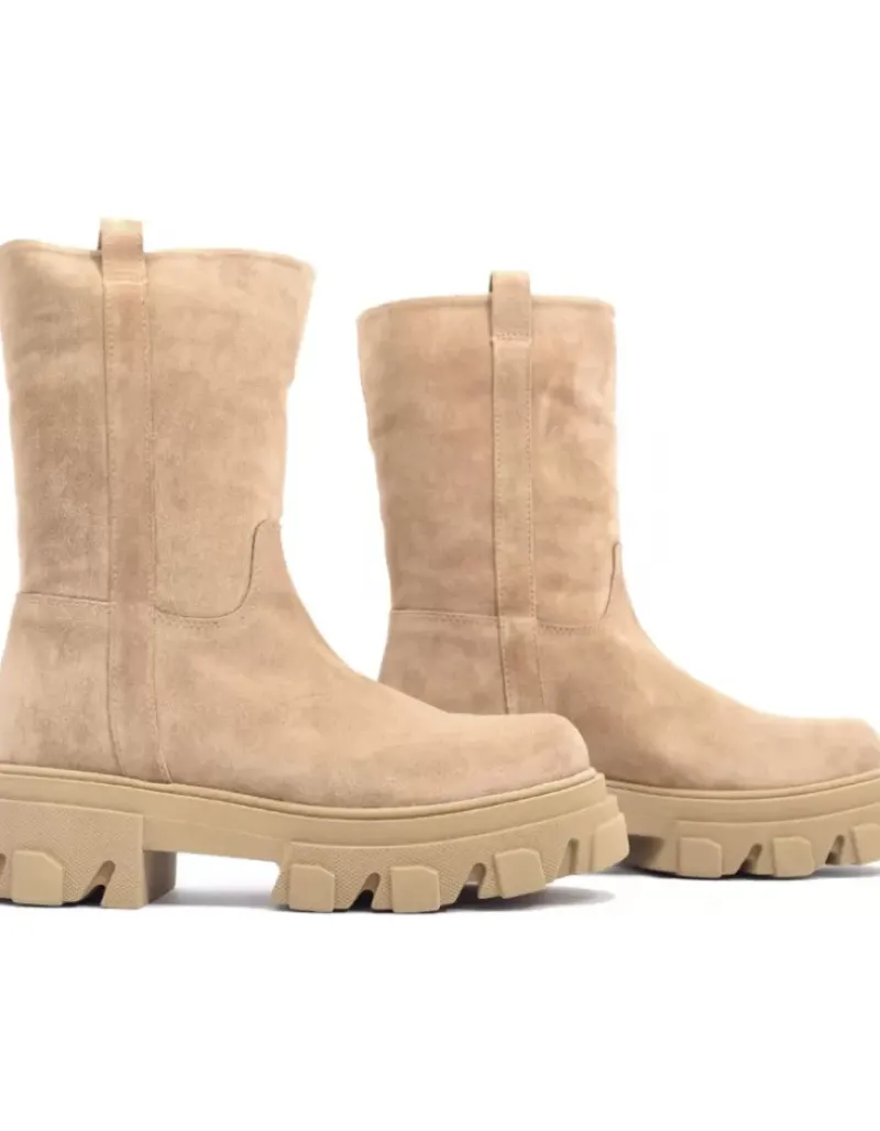 Botin Para Mujer Alpe Liverpool, Fabricado En Piel (Baby Silk) De Color Canela Con Tacon De 5 Cm, Suela Antideslizante Y Puntera Redonda, Sin Cierre Y Cana Media.