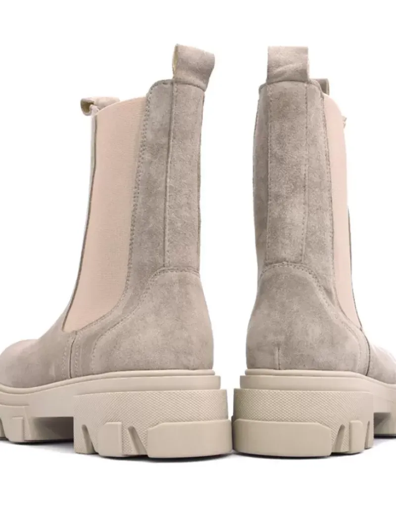 Botin Para Mujer Alpe Liverpool, Fabricado En Piel (Baby Silk) De Color Polar Con Tacon De 5 Cm, Suela Antideslizante Y Puntera Redonda, Sin Cierre Y Cana Media.