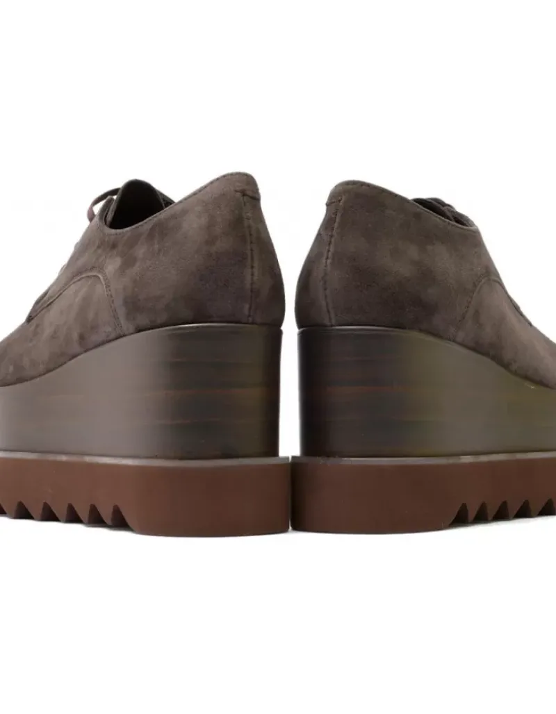 Zapato Para Mujer Alpe London, Fabricado En Piel (Baby Silk) De Color Antracita Sin Tacon, Suela Antideslizante Y Puntera Redonda, Con Cierre Mediante Cordon.