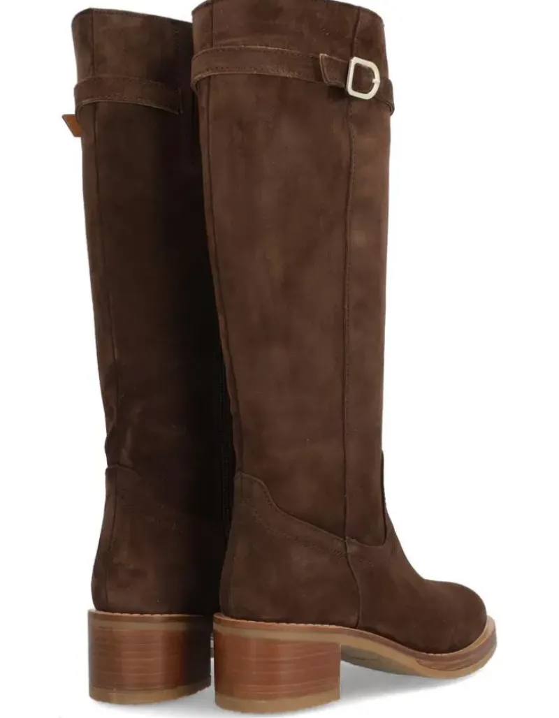 Bota Para Mujer Alpe Madame, Fabricada En Piel (Baby Silk) De Color Arabica Con Tacon De 5 Cm, Suela Antideslizante Y Puntera Redonda, Con Cierre Mediante Cremallera Y Cana Alta.