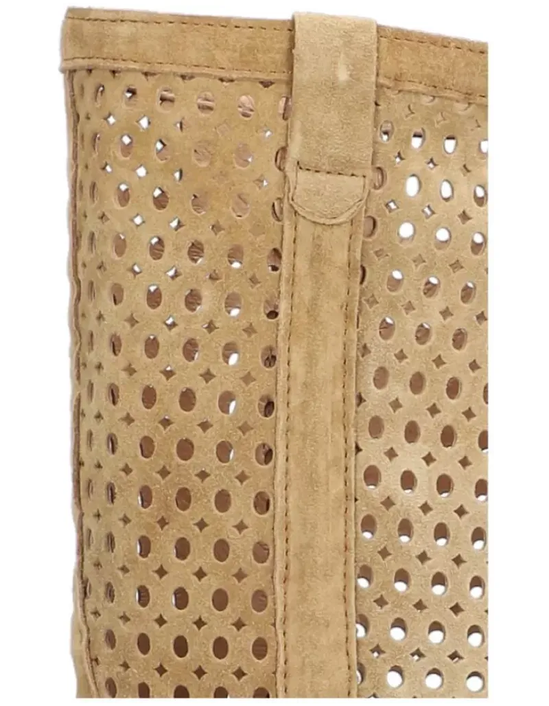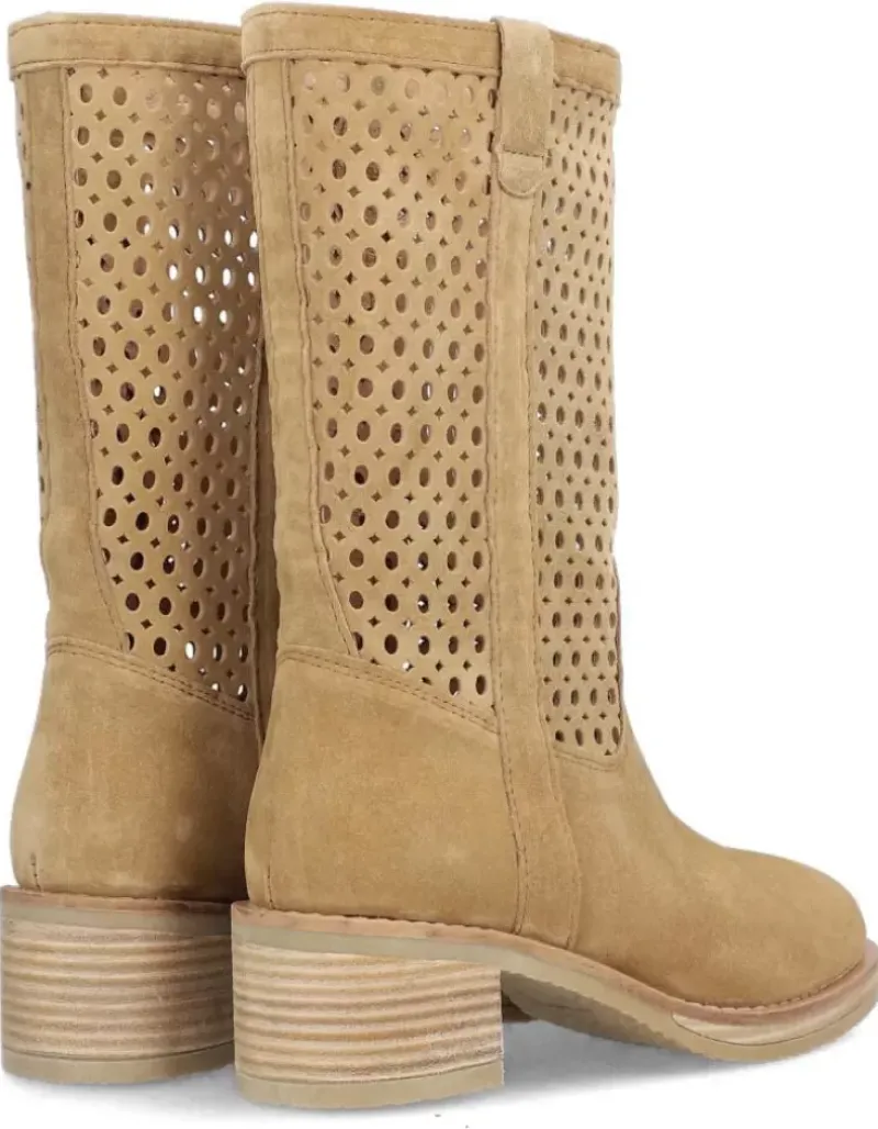 Bota Para Femme Alpe Madame, Fabricada En Piel (Baby Silk) De Color Alce Con Tacon De 5 Cm, Suela Antideslizante Y Puntera Redonda, Sin Cierre Y Cana Media.