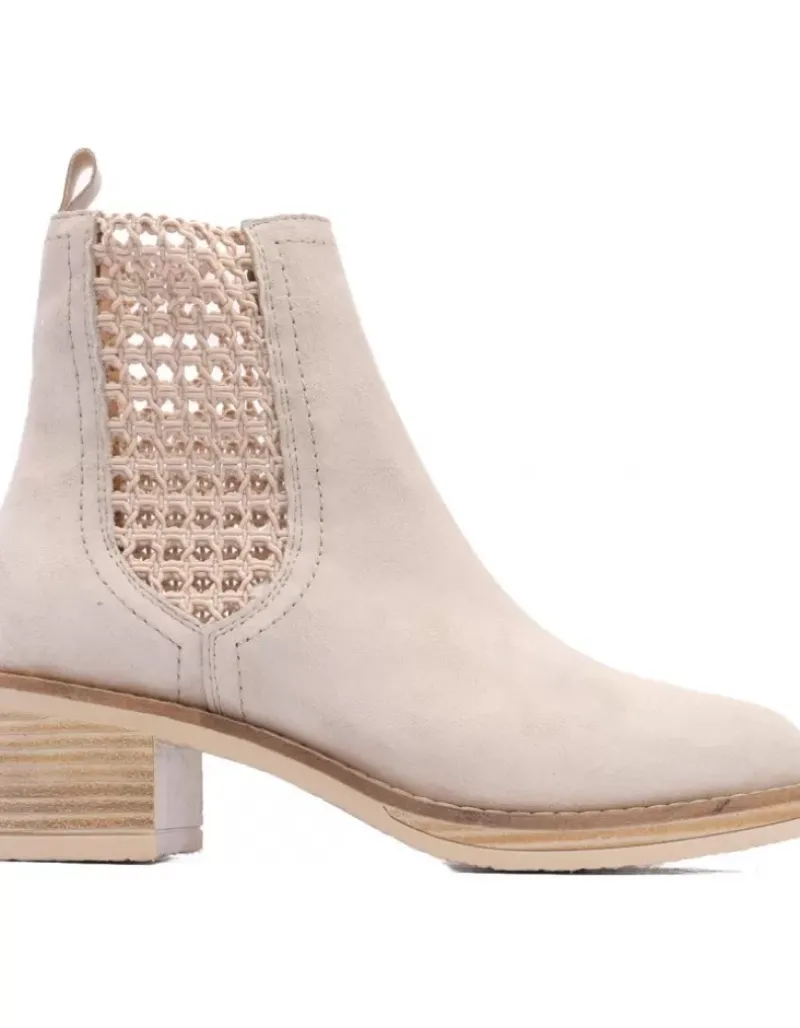 Botin Para Mujer Alpe Madame, Fabricado En Piel (Baby Silk) De Color Artico Con Tacon De 5 Cm, Suela Antideslizante Y Puntera Redonda, Sin Cierre Y Cana Baja.