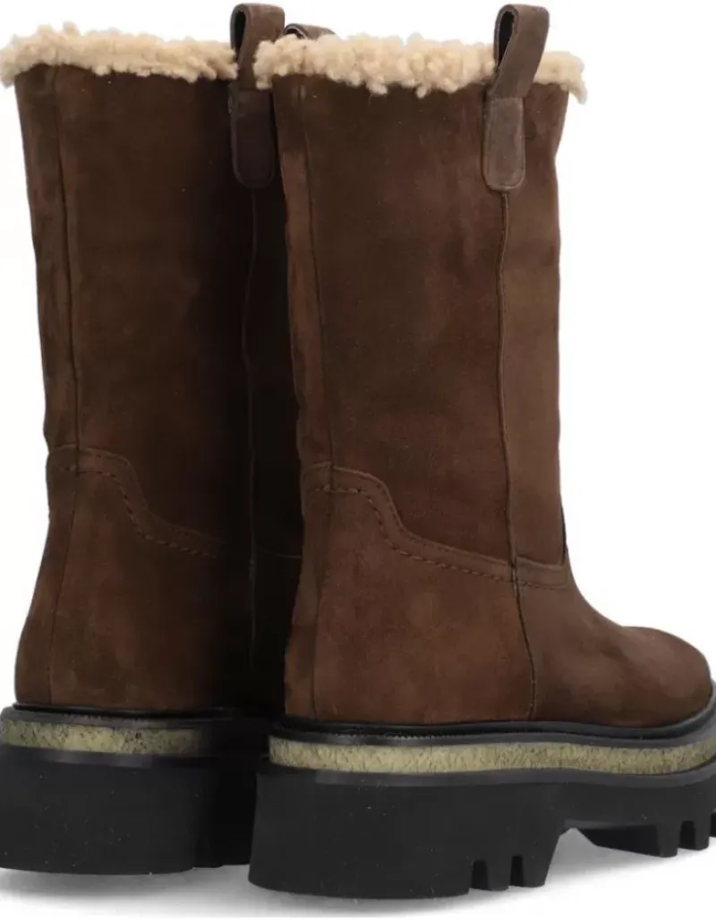 Bota Para Femme Alpe Milano, Fabricada En Piel (Baby Silk) De Color Arabica Con Tacon De 5 Cm, Suela Antideslizante Y Puntera Redonda, Sin Cierre Y Cana Media.