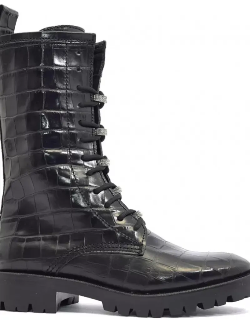 Bota Para Mujer Alpe Militare, Fabricada En Piel (Coco) De Color Negro Con Tacon De 3,5 Cm, Suela Antideslizante Y Puntera Redonda, Con Cierre Mediante Cremallera Y Cana Media.