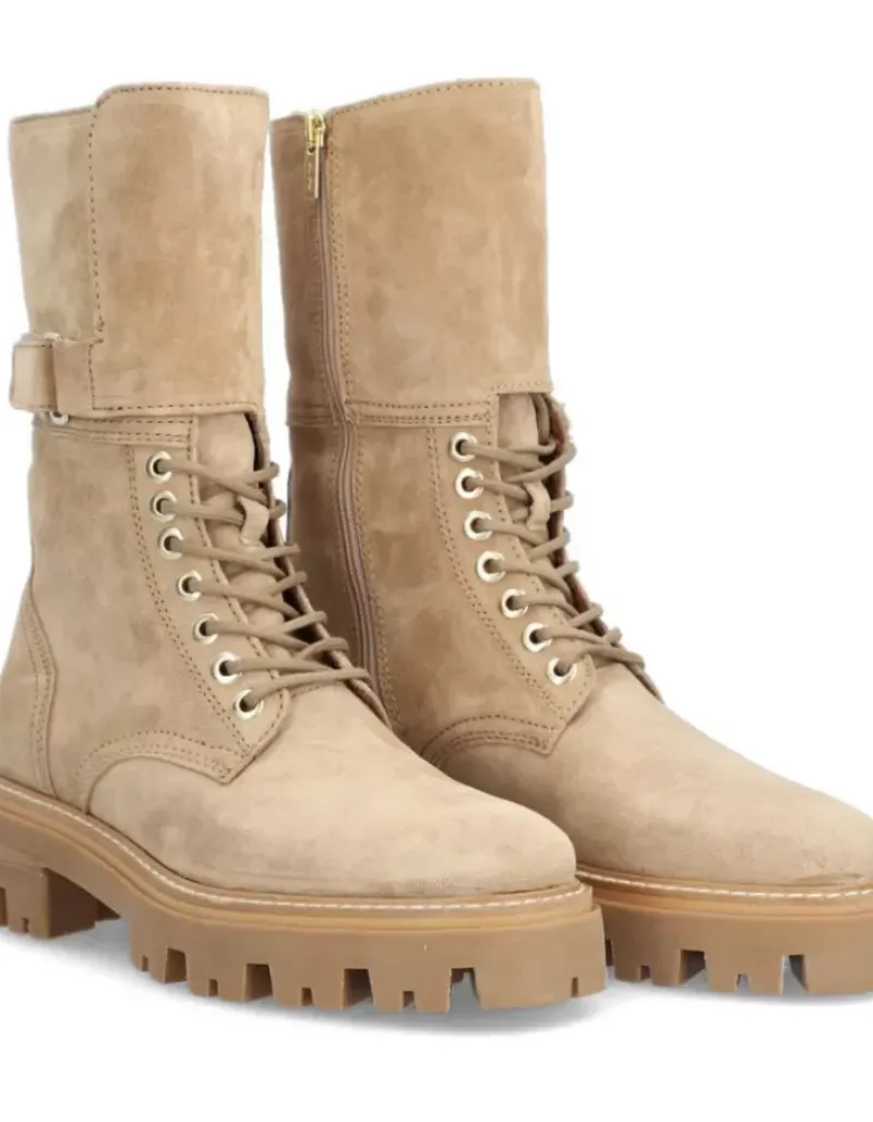 Bota Para Femme Alpe Monza, Fabricada En Piel (Baby Silk) De Color Noisette Con Tacon De 5 Cm, Suela Antideslizante Y Puntera Redonda, Con Cierre Mediante Cremallera Baja.