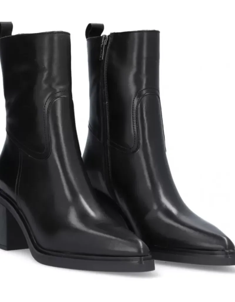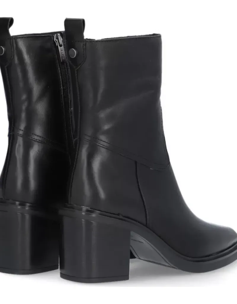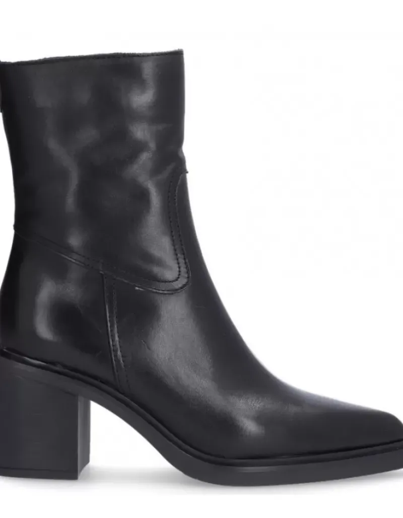 Botin Para Femme Alpe Naomi, Fabricado En Piel (Becerro) De Color Negro Con Tacon De 8 Cm, Suela Antideslizante Y Puntera Afilada, Con Cierre Mediante Cremallera Y Cana Baja.
