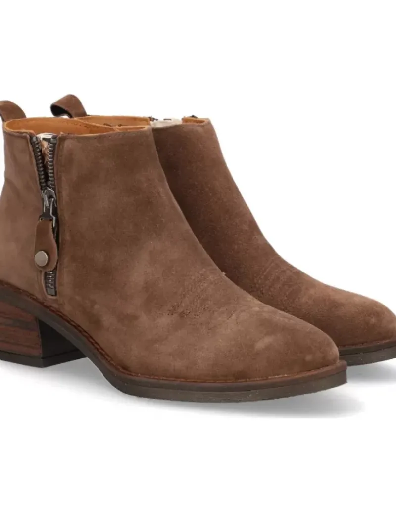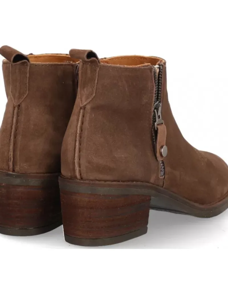 Botin Para Femme Alpe Nelly, Fabricado En Piel (Baby Silk) De Color Arabica Con Tacon De 4,5 Cm, Suela Antideslizante Y Puntera Redonda, Con Cierre Mediante Cremallera Y Cana Baja.