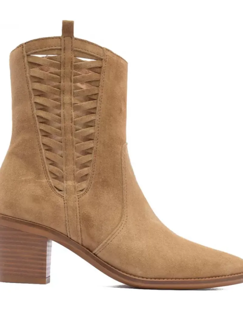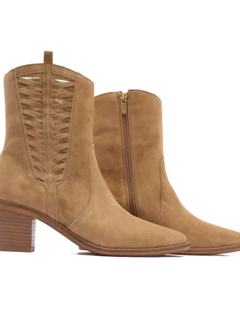 Bota Para Mujer Alpe Nevada, Fabricada En Piel (Baby Silk) De Color Alce Con Tacon De 6 Cm, Suela Antideslizante Y Puntera Redonda, Con Cierre Mediante Cremallera Y Cana Media.