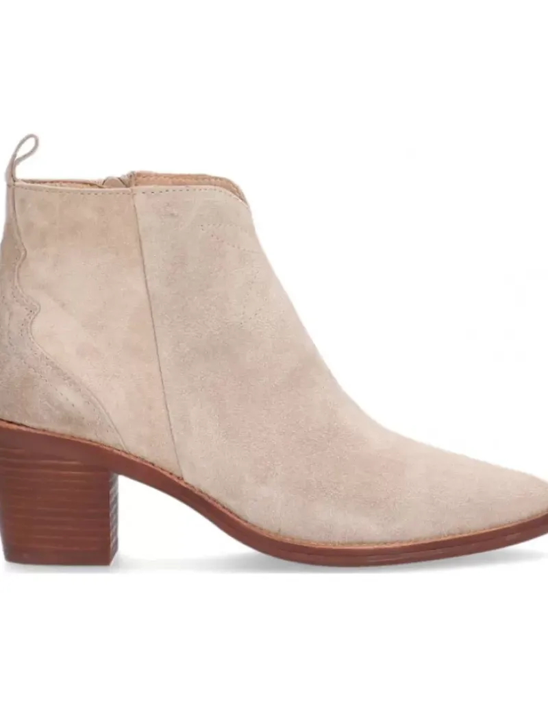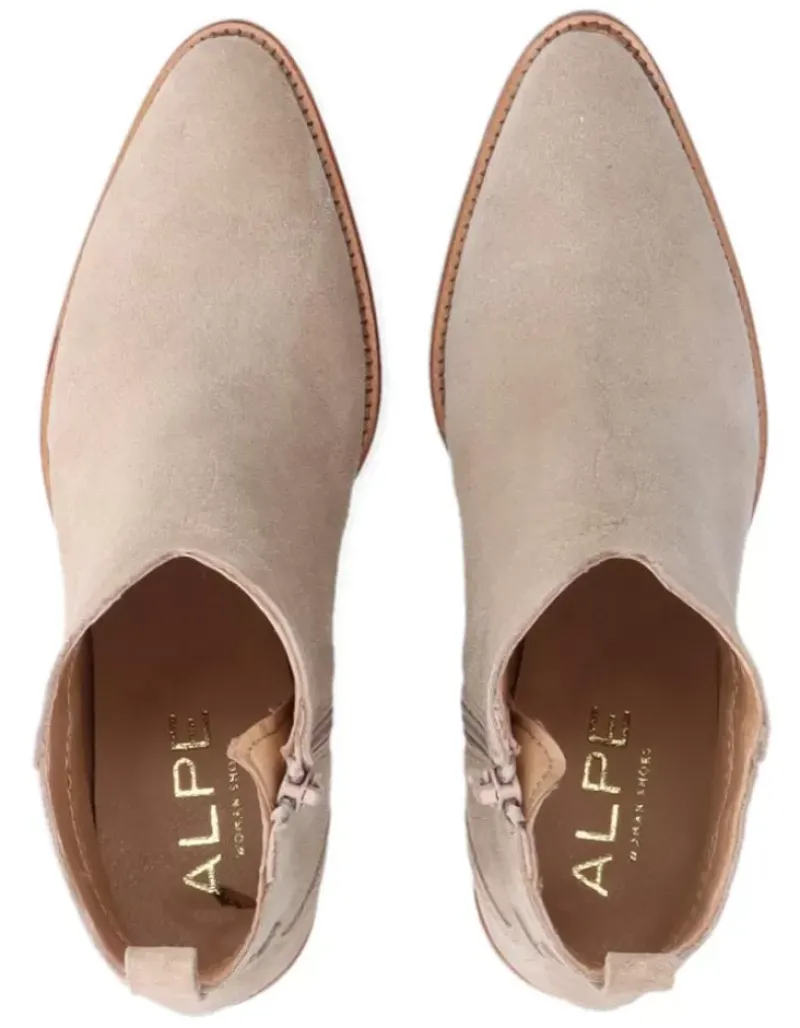 Botin Para Femme Alpe Nevada, Fabricado En Piel (Baby Silk) De Color Dessert Con Tacon De 5,5 Cm, Suela Antideslizante Y Puntera Afilada, Con Cierre Mediante Cremallera Y Cana Baja.