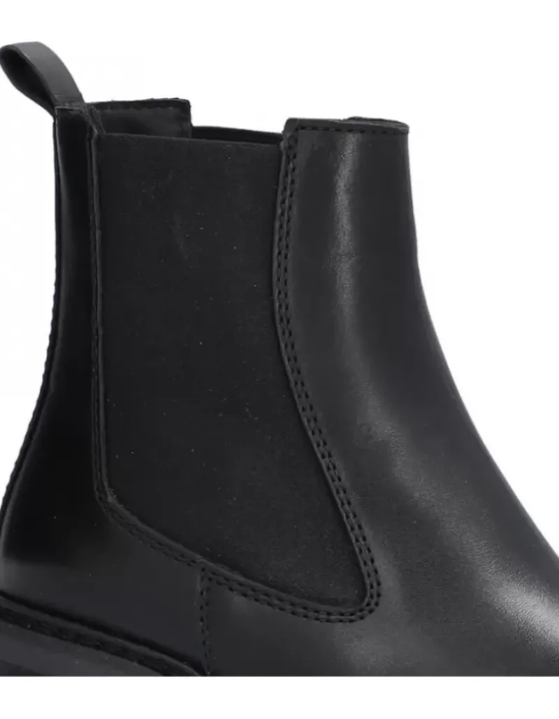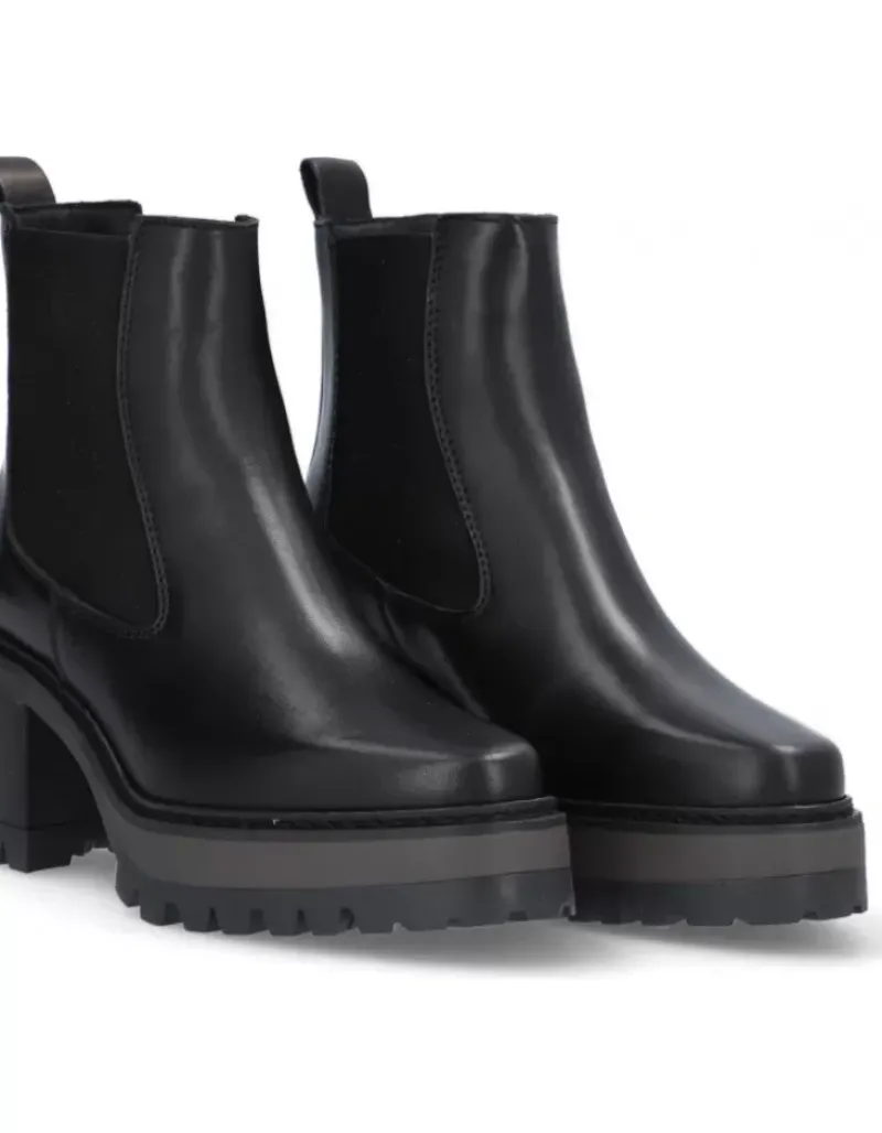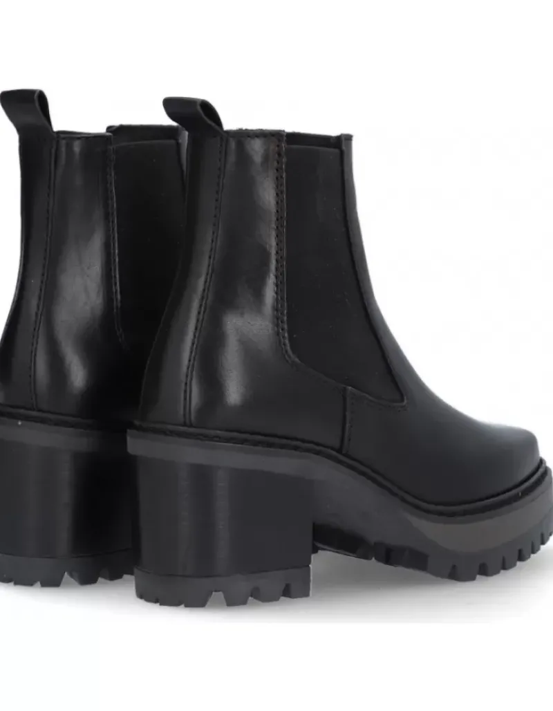 Botin Para Femme Alpe New Amelie, Fabricado En Piel (Becerro) De Color Negro Con Tacon De 7 Cm, Suela Antideslizante Y Puntera Redonda, Sin Cierre Y Cana Baja.