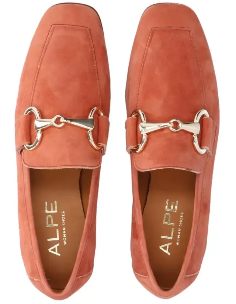 Mocasin Para Femme Alpe New Roma, Fabricado En Piel (Ante) De Color Hall Con Tacon De 1 Cm, Suela Antideslizante Y Puntera Cuadrada, Sin Cierre.