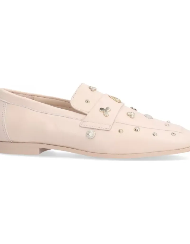 Mocasin Para Mujer Alpe New Roma, Fabricado En Piel ( Pamplona) De Color Dessert Con Tacon De 1,5 Cm, Suela Antideslizante Y Puntera Cuadrada, Sin Cierre.