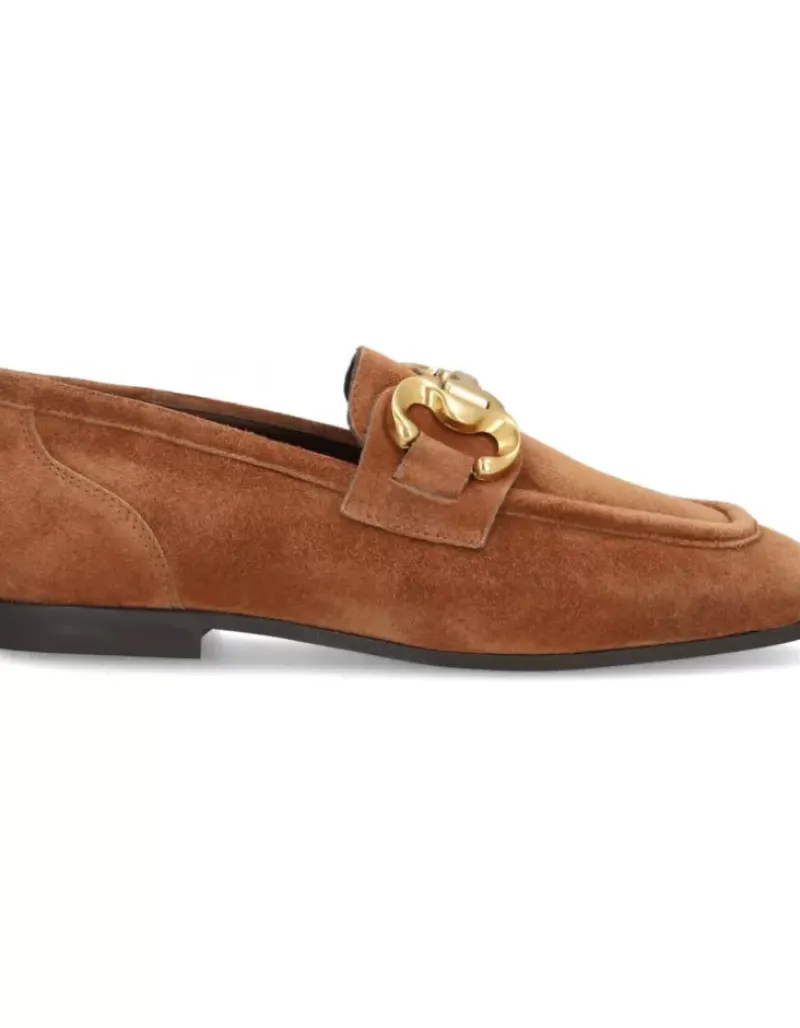 Mocasin Para Femme Alpe New Roma, Fabricado En Piel (Baby Silk) De Color Sella Con Tacon De 1 Cm, Suela Antideslizante Y Puntera Cuadrada, Sin Cierre.