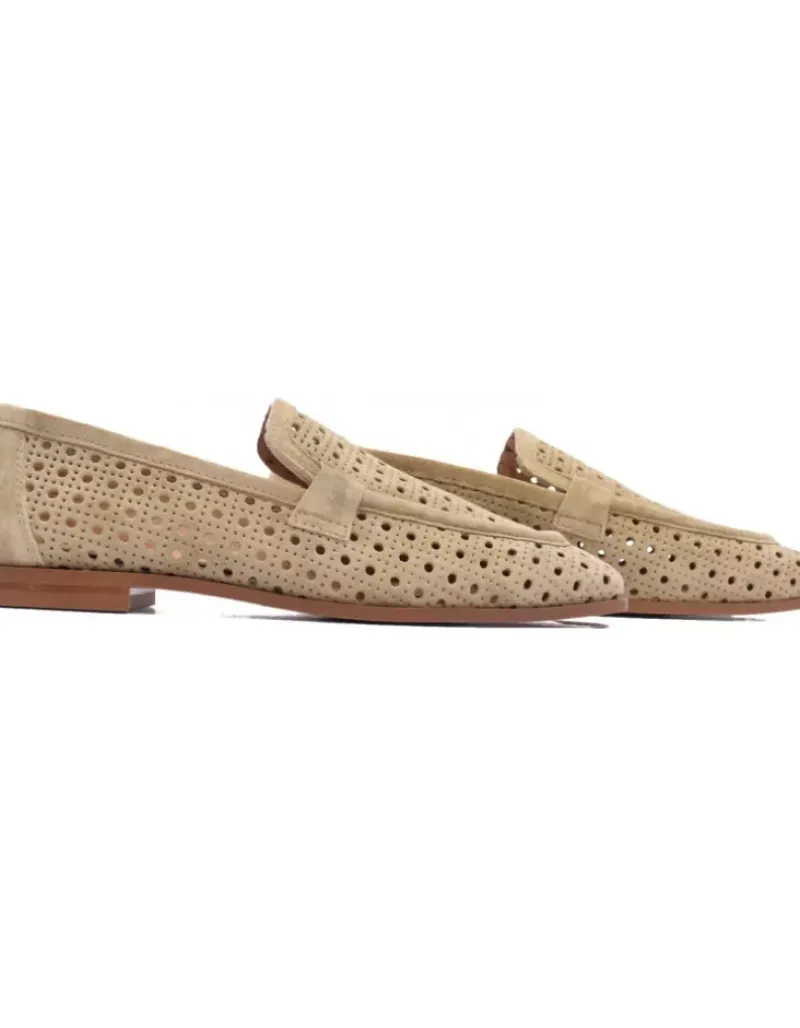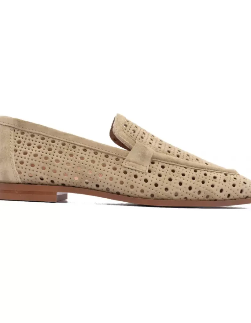Mocasin Para Femme Alpe New Roma, Fabricado En Piel (Baby Silk) De Color Kaki Con Tacon De 1 Cm, Suela Antideslizante Y Puntera Cuadrada, Sin Cierre.